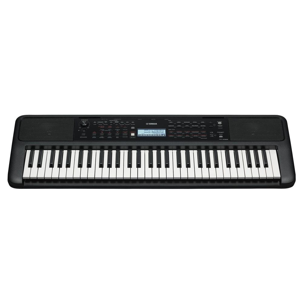Introducing the Yamaha PSR-E383 portable keyboardThe Yamaha PSR-E383 Portable Keyboard is perfect for beginner musicians looking to expand their skills and musical expression. This 61-key keyboard features full touch response, allowing nuanced control over each note, catering to the delicate expressive needs of the player. It boasts an impressive array of 650 instrument voices that bring the sounds of real instruments into your practice room or performance space.Complete with 260 auto accompaniment styles, the PSR-E383 enhances your playing with rhythmic backing, letting you feel like a real bandleader! Its integrated USB audio/MIDI interface extends its functionality, enabling connections with computers and other recording equipment.Plus, with the innovative "Keys to Success" learning functions and Duo mode, it supports effective learning and duet performances, making it a versatile choice for all pianists. You can also apply batteries to this keyboard (not included) for portable playing or use the included power cable.Expressive playing pleasure with touch sensitivityPlay the keys strongly and the sound gets louder. Play them softly and it becomes gentle and delicate. This expressive touch response function brings out even the most minute sound nuances in your performance and this feature is invaluable for developing dynamic control and expressive performance skills, crucial for any aspiring musician.Better yourself with built-in lessonsThe keyboard features 3-step Lessons that let you practice according to your own personal level, allowing you to practice with just your right hand, or your left hand, or both hands together with the built-in Songs, and practice the same phrases repeatedly as needed. It also evaluates your practice sessions, giving you feedback and even greater practice enjoyment.Get inspired with comprehensive backing featuresSimply by playing the root note of a chord (or the full chord), the powerful Style features automatically add rhythm, bass, and chordal backing notes to perfectly match the chords you play—easily allowing you to enjoy playing as if you were performing with an entire backing band. In addition, the Auto Chord Play function lets you automatically produce musically appropriate chord progressions and further expand your musical horizons.Vast voice varietyThe PSR-E383 is equipped with an extensive selection of 650 voices, including lifelike pianos, guitars, drums, and orchestral instruments. This variety allows you to experiment with different sounds and styles, from classical compositions to modern pop hits. Each voice is crafted to reflect the nuances of the actual instruments, enhancing your performances with authenticity and depth.Duo mode - double the fun!Duo mode is a great educational feature of the PSR-E383, perfect for lessons or collaborative performances. It splits the keyboard into two identical sections, each with its own middle C. This setup is ideal for student-teacher interaction or duetting with another player, offering a practical and enjoyable way to learn and share the joy of music.Comes with two free online music lessons!Yamaha are showing their commitment to helping beginner musicians progress by offering two free online lessons for customers who buy the PSR-E383! All you need to do is register your product here, then find an online lesson which looks suitable for you and book online. Kickstart your journey into music with a teacher who will help drive your passion.Exciting entry-level keyboard - brilliant for education!, 61 touch sensitive keys with 48-note polyphony, 650 high quality Voices with superb sampling, Reverb, Chorus and 41 types of DSP effects, USB TO HOST allowing two-way MIDI and digital audio transfer, 260 preset accompaniment styles with 125 built-in songs to learn