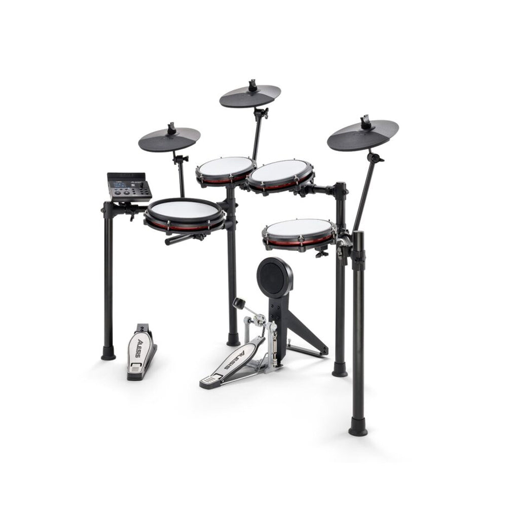Introducing the Alesis Nitro Max electronic drum kitRaising the bar for drummers, the Alesis Nitro Max delivers an authentic playing experience, all in compact, stylish design. Including a 10†large snare pad for the ultimate playability, 3x 8†tom pads, a 10†cymbal with choke, a 10†ride, a 10†hi-hat with foot controller and the Nitro Max module. With great connectivity, the Alesis Nitro Max kit features a USB/MIDI connection for virtual instruments and Bluetooth connectivity, meaning you can wirelessly play along to songs from your phone. It also has a 1/8 stereo aux input, 1/4 stereo line outputs and 1/8 headphone output. Ideal for practising your drum skills at home, the kit comes with three months of Drumeo, the biggest online drum education platform as well as 60 free lessons from melodics. This is the perfect starter kit for developing your playing ability. The Nitro Max drum moduleThe Nitro max drum module includes professionally recorded sounds from the BFD drum library along with 60 built-in play-along tracks, a sequencer, metronome, and performance recorder. Discover endless possibilities with the featured 440 drum, cymbal, and percussion sounds. Great for learning and practisingThe Alesis Nitro max offers everything you need to learn or improve your drumming skills. Practice anywhere and anytime due to the premium mesh heads which offer a responsive and enjoyable playing experience with minimal external noise. There are a host of different learning tools designed to help you improve your playing and timing. Plus, with Bluetooth connection and a built in device holder on the module, you can seamlessly play along with your favourite tracks from music streaming services, so you can play along with your favourite songs. Includes three months of DrumeoDrumeo is the world’s biggest online drum education platform, providing step-by-step lessons from over 200 of the world’s best drummers and over 5000 hit songs to learn from many different genres and artists. The songs can be sped up and slowed down, helping you to learn at your own pace. You can also benefit from the Drumeo online community of over 3 million drummers, helping you to keep motivated and reach your goals. 60 Free lessons from Melodics – Plus 1-month premium subscriptionThe Alesis Nitro Max kit gives you 60 free lessons from Melodics plus 1 month of premium access. Melodics offer an active, song-based learning approach with a game-like approach to learning, giving you instant feedback on your progress. Portable and durableWith a lightweight and portable design, you can fold the Alesis Nitro Max kit away for easy storage, perfect for bedrooms, classrooms, and any other area where the space may be limited. This does not effect durability however, with the drum pads, cymbals and module all mounting to a four-post rack ensuring they will stand firm in place no matter how hard you play. What’s included:Premium mesh drum heads for a quiet yet natural responseA large 10†dual-zone mesh snare for maximum playability(3) 8†mesh single zone tom pads10†crash cymbal with choke10†ride10†hi-rat with foot controller4-post aluminium rack for maximum stability and flexibilityConnection cables, drumsticks, drum key, and power supply includedProfessionally recorded sounds from BFD drum libraryBluetooth audio streaming for wireless music play along32 ready to play BFD, classic and modern kits + 16 user kits440 drum, cymbal and percussion sounds60 built-in play-along tracks, sequencer, metronome, and performance recorderUSB/ MIDI connection for virtual instruments and recording software1/8†stereo aux input, 1/4" stereo line outputs and 1/8†headphone output90-day free subscription to Drumeo30-day free subscription to Melodics Our Alesis electronic drum kit rangeAlesis DEBUT electronic drum kitAlesis Turbo Mesh electronic drum kitAlesis Nitro Max electronic drum kitAlesis Surge Mesh electronic drum kitAlesis Command Mesh electronic drum kitPerfect 8-piece kit for beginners, including everything you need to get started, Features built in sounds, a sequencer, metronome, play-along tracks and performance recorder, The premium mesh heads allow for quiet practice, Includes FREE three months of Drumeo, the biggest online drum education platform, Neatly folds away for easy storage, USB/ MIDI connection for virtual instruments and Bluetooth connectivity
