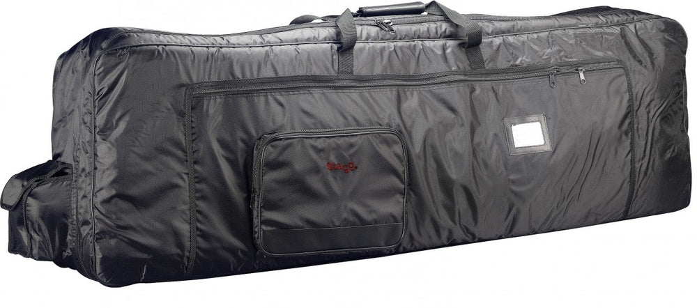 The Stagg deluxe padded nylon gig bag is the perfect transport choice for your keyboard, available in a range of sizes from 61 to full 88 keys. Featuring two accessory pockets on the outside of the bag, one perfect for music or a tablet and the other for pedals and power supplies, it is ideal for the gigging musician. And with 18mm padding, it will protect your keyboard in transport and temporary storage.Nylon web handles are adjustable and have soft grips for comfort and double stitching across the whole bag reinforces the security of your keyboard and peace of mind when travelling from gig to gig. Deluxe nylon keyboard gig bag, 18mm padding, Two accessory pockets on the outside, Comfort handles and reinforced corners, ,