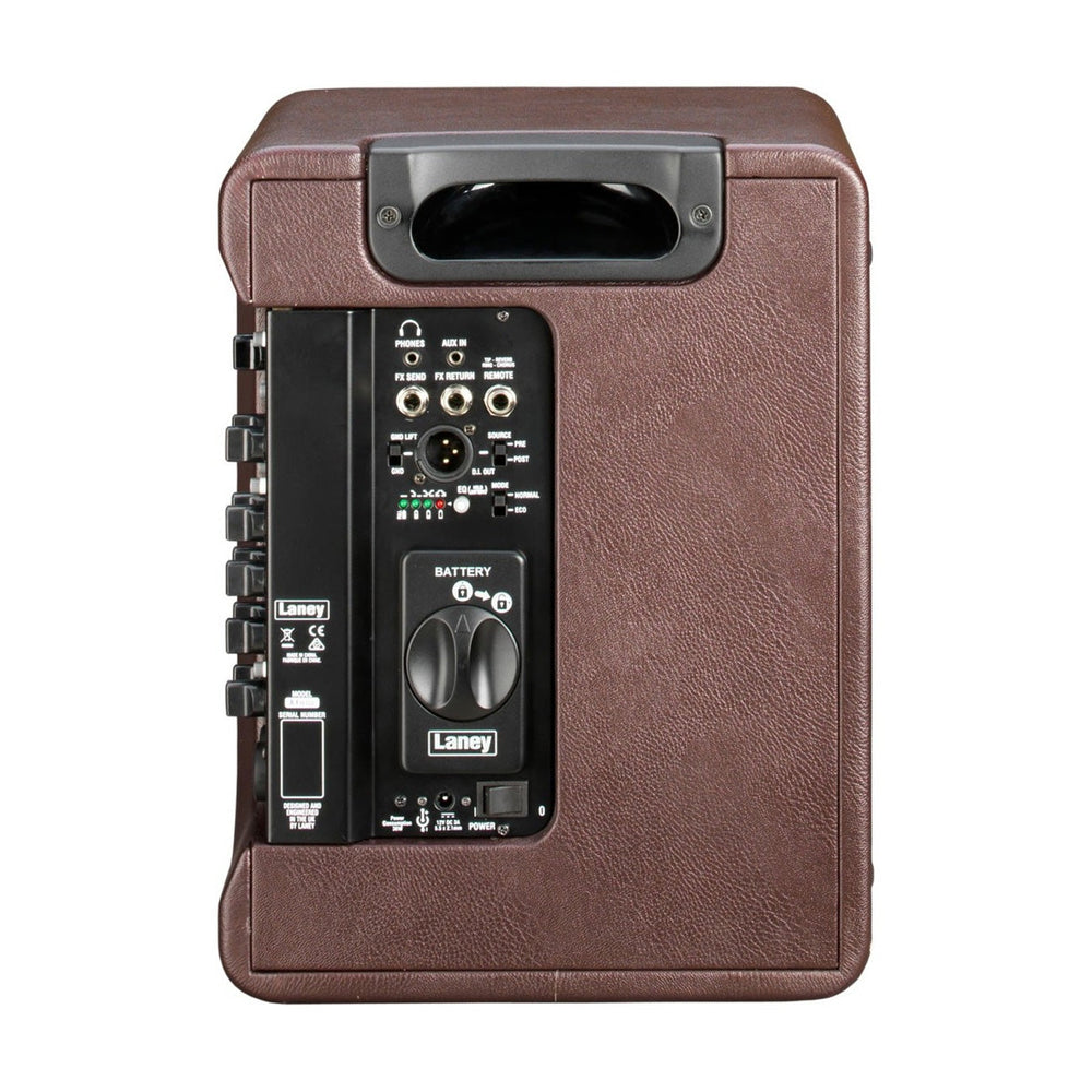 Introducing the Laney A-Fresco-2 60W acoustic combo amplifierThe Laney A-Fresco-2 60W Acoustic Combo Amplifier is a performers dream, offering crystal clear amplified acoustic tones from an ultra-compact and lightweight design. Powered by its built-in rechargeable battery, the A-Fresco-2 can be used to perform quite literally anywhere!A multitude of applicationsThe A-Fresco-2 can be utilised for a myriad of results. Acoustic guitars can be plugged in directly with a jack but then you can also mic your acoustic up and send that to the amp as well so you can blend both signals to get exactly the sound you want. This is a really great way to get the most out of your instrument.The Laney A-Fresco 2 is also a great practice and recording tool! With a headphone out and an auxiliary in, you could load up your favourite jams or backing tracks and play along in relative silence. If you want to audition new tones before you record them, you can hook this up to your audio interface or mixing desk with a simple XLR or jack connection. With your headphones in, you can sculpt the EQ and external effects to taste.With an aux input for iPods and other music players and an array of connectivity options for microphones, this could be perfect for small parties and acoustic house shows all on its own. Best of all, it negates the need for some much extra equipment and it’s only 7kg – a party you can carry! Including an FX send and return for external equipment and a DI out for connecting to a PA if you need more versatility out of the unit – you have it.Clarity of soundFeedback should be the last of your problems when you are playing, and Laney took this into account adding a feedback detection over multiple frequency ranges. This detects frequencies that are starting to feedback and adjusts accordingly. This is as simple to engage as pressing a button and is recommended to keep on if using an acoustic or a vocal mic – it is always nice to feel reassured.Trustworthy battery lifeThe A-Fresco 2 has a battery that will outlast any gig, show, performance, you name it! It boasts up 24hrs on low power mode (reduces power to the amp) and a sleep mode function that when engaged works on both ‘eco’ and ‘normal’ power modes so you are never aimlessly wasting battery life – yet another reason to feel reassured.Find your toneFor sculpting tone and adding space. The A-fresco 2 independent channel strips, each with there own EQ, reverb, and chorus effects. The EQ features the usual suspects (bass, middle, and treble) as well as a ‘shape’ function which raises the treble and bass response, giving a ‘scooped’ to the mid-range which results in a little more clarity and top end sparkle then balanced with a lush warmth in the bass response. Included in the amp is a reverb and a chorus, perfect for adding a bit of 3D dimensionality to your tone, giving it a sense warmth and character.Features two independent channel strips each with an EQ and FX - perfect for developing your tone, A 60W 8" dual cone speaker, gives great bass while never being shrill in the treble, A high quality XLR out for plugging in to a PA which has a switchable pre/post EQ, Laney have made a versatile amp that can also be used as a PA with 24hrs battery life, Complex multifunctional unit that can even be used as a small PA,