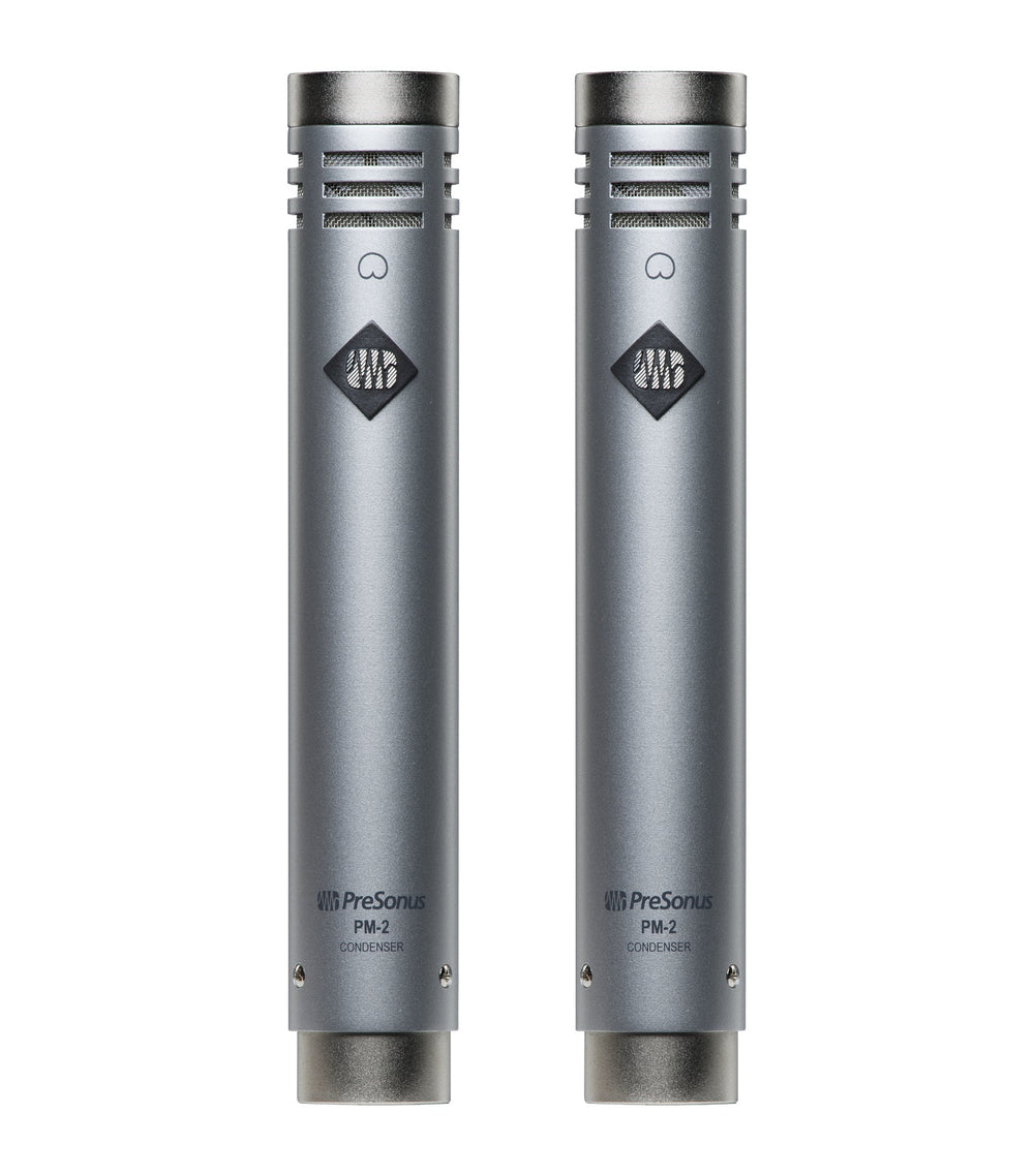 Introducing the PreSonus PM-2 small-diaphragm cardioid condenser microphones Ideal for stereo recordings of acoustic instruments, drum overheads, ensembles and more, the PreSonus PM-2 stereo microphone set provides the tools you need to create professional results. These versatile mics can be used as a pair or you can just use one, making them perfect for all your needs. Small diaphragm microphones are often used for delicate orchestral instruments, acoustic guitars, cymbals, hi-hat and small percussion instruments, they are the perfect mics to use when you need to capture a lot of detail, and the PM-2 is great at capturing quality audio. Sonically Matched for Precise Stereo Imaging Each PreSonus PM-2 small-diaphragm cardioid condenser microphone is equipped with a ¾â€ gold-sputtered capsule housed in an ultra-light chassis, making it easier to perfectly position your microphones without fighting gravity. Sold as a sonically matched pair, the PM-2 comes equipped with a stereo bar for XY mic placement. PM-2 microphones can be used together or individually, making them an excellent addition for any home or professional recording environment. 2 matched condenser microphones, Stereo pair, small-diaphragm, Cardioid polar pattern, 0.75†(19 mm) gold-sputtered capsule, Mic clips and stereo bar for XY mic placement included, Extra light chassis for easy positioning