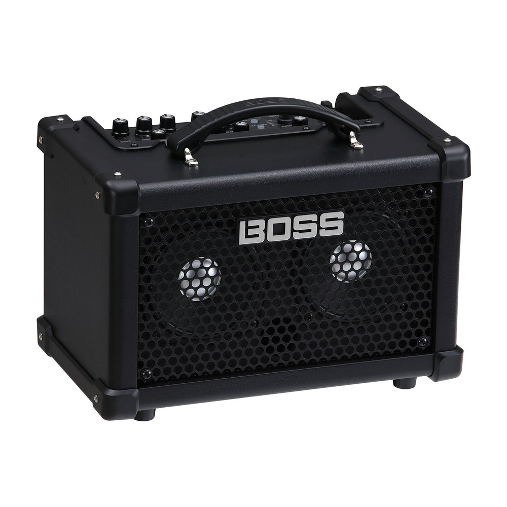 Introducing the Boss Dual Cube Bass LX bass guitar amplifer For over four decades, CUBE amplifiers have brought exceptional value to musicians everywhere, offering great sound and versatile features in portable, go-everywhere designs. The DUAL CUBE BASS LX is the most advanced compact CUBE bass amp yet, filled with evolved BOSS technologies for the ultimate home practice experience. This thunder box punches well above its size, delivering rich, full sound and a host of fun rhythm patterns to groove with. A generous array of connectivity options are also included, extending its range to performing, recording, and many other applications. With its compact size and authentic BOSS tones, the DUAL CUBE BASS LX delivers instant gratification for everyday playing at home and on the go. And its ultra-flexible design lets you go much further when you want, providing advanced features that reach well beyond the capabilities of other compact bass guitar amps. Stage Sound at Home With its custom stereo speaker system and advanced cabinet design, the DUAL CUBE BASS LX delivers big, refined tones that you won’t believe are coming from such a small amp. Five different preamp types are available, offering uncolored sounds for studio and slap playing, vintage sounds for classic styles, and aggressive modern tones for heavy genres. With natural feel and organic response honed with decades of BOSS amp development, you have an endlessly inspiring platform to hone skills and explore new techniques. Find Your Voice The DUAL CUBE BASS LX features a variety of bass-tuned effects, including many with expansive stereo sound. Shape your core tone with compression or drive, add color with touch wah, flanger, or chorus, and bring in spatial depth with delay or reverb. Each amp type includes three user memories, allowing you to store gain, EQ, and effect setups for quick recall. The DUAL CUBE BASS LX Editor lets you dive even deeper, providing access to effect variations and detailed parameter tweaks from your Mac or Windows computer. Get in the Groove Make your practice sessions more fun and productive with the powerful onboard Rhythm Guide. There are nine rhythm types with three pattern variations each, spanning from a basic metronome to realistic drum grooves in rock, jazz, metal, Latin, and other styles. Using the DUAL CUBE BASS LX Editor, you can explore a total of 91 rhythm variations and save your favorites in the amp. With the high-performance stereo speakers, rhythms and backing music are presented in full-range detail for a rich, immersive experience. Beyond the Bedroom Thanks to its ultra-flexible connectivity, the DUAL CUBE BASS LX goes far beyond the capabilities of other compact amps. Use the stereo XLR line output to directly connect to a PA system and perform on stage. Or capture mix-ready sounds in music software on a computer or mobile device via USB or i-CUBE-Link. If you like to livestream, you can capture your voice with a headphones mic and send it to the USB and i-CUBE Link outputs along with your bass sound. And with the ability to use AC or battery power, you can play absolutely anywhere. Expand Your Possibilities With optional FS-series footswitches, you can operate the Rhythm Guide hands free and unlock access to the onboard looper to create layered performances. And by connecting the optional Bluetooth ® Audio MIDI Dual Adaptor, you can go even further with a smartphone or tablet. Wirelessly stream music from your device and jam along, or use the iOS/Android version of the DUAL CUBE BASS LX Editor to tweak functions remotely. Or pair the EV-1-WL Wireless MIDI Expression Pedal for cable-free operation of wah and volume. Ultra-portable stereo bass amplifier with professional sound and features, Five preamp types: Super Flat, Flat, Vintage, Modern, and Rock, Onboard rhythms with 27 different patterns (nine types and three variations each), Edit sounds and more with the dedicated DUAL CUBE BASS LX Editor, Control jack for up to two external footswitches, Phones/Rec jack with support for an inline headphones microphone