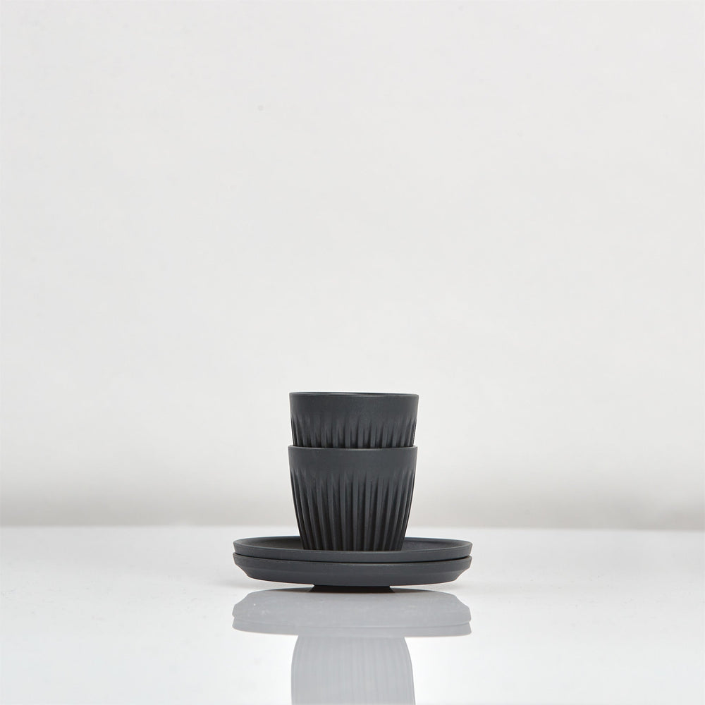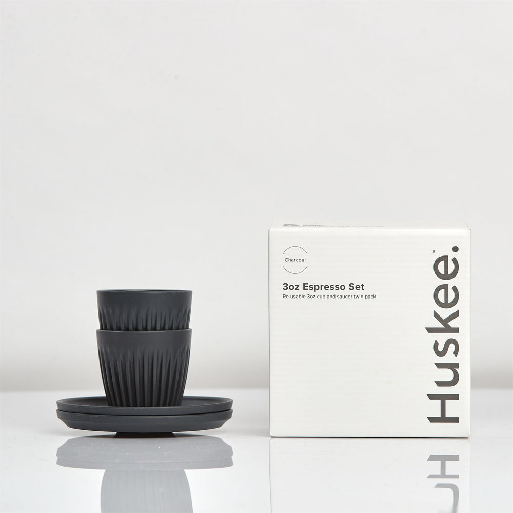 Introducing the 3oz Espresso HuskeeCup and Saucer Set of 2The HuskeeCup is a triumph of sustainability through innovation, perfect for coffee lovers in any setting – whether you’re a teacher, parent, student, or busy professional. Designed to keep your coffee hot and protect your hands, these cups eliminate the need for cardboard or rubber sleeves. Dishwasher safe and stackable, they offer superb convenience for schools and offices, letting you keep the caffeine flowing as long as you need it! This stackable 2-pack of 3oz espresso HuskeeCups and saucers makes a great, efficient addition to school offices and staffrooms.Space-efficient, sturdy and understatedly sleek, the HuskeeCup is also the perfect staffroom accessory, and buying in bulk is easy. All you need to do is become a wholesale customer by following the link below to our quick application form. Cheaper prices, bulk discounts, larger packs and even customisation options await!Sustainability is key to HuskeeCups’ success. Did you know, in the UK alone we use 7 million disposable coffee cups every day? The reusable HuskeeCups not only battle the waste produced by disposable cups, they also take on and repurpose waste from the coffee production process. Every cup is made using coffee husk, an organic waste material that's typically discarded at the milling stage of coffee production. What is a HuskeeCup made from?A HuskeeCup is made from a unique eco-composite polymer with coffee husk at its core. Coffee husk, the discarded outer layer of a coffee bean, is a waste product generated during the milling stage of coffee production. The husk used in these cups is sourced from Yunnan Coffee Traders (YCT) in rural Southwest China. Before partnering with Huskee, like many coffee farms around the world, YCT used the husk as a fertilizer buffer or a fuel source—though not a very efficient one. Leftover husk would accumulate, posing fire risks and pest problems.Now, through their collaboration with Huskee, Yunnan Coffee Traders can sustainably dispose of their milled coffee husk, which is collected, transported, and repurposed at Huskee's manufacturing facility in China. A cup for any scenarioA focus of the HuskeeCup design is how it performs in a working coffee shop environment, making them more than ready for use in the office, staffroom or on your commute. Are they easy to clean and dishwasher safe? Of course. Are they durable? Yes. Are they stackable? Absolutely. Fully equipped to take the daily strain of a busy restaurant or café, this attention to long life and usability makes a HuskeeCup very suitable for anywhere, and anyone.Fits perfectly on the Classic SaucerThe HuskeeCup universal saucers are a perfect fit for almost all the HuskeeCup sizes. Utilising Huskee's "hill and valley" locking system, your HuskeeCup will nest snugly onto the saucer reducing the chance of spillage. Our 4-pack of Classic Saucers pairs makes for an ideal match with these cups, providing reliable protection for surfaces in your classrooms, offices and staffrooms.Wholesale packs and custom cupsHuskeeCups make for fantastic staff wellbeing gifts, especially with our UV printing customisation service! You can get your logo on the lids of any original HuskeeCup via a state-of-the-art UV printing process, making for the perfect gift to throw in a luxury corporate hamper, take to events or give away as promotional items.The HuskeeCups are also available in great-value wholesale packs which allow you to purchase a large quantity of cups at a discounted price. Please contact the sales team at Frederick Hyde on sales@frederickhyde.com or fill out our application form HERE. How to clean your HuskeeCupHuskeeCups are easy to look after, as long as you follow a few simple rules. AVOID abrasive cleaners such as scourers or Brillo pads. DO use a microfibre cloth for tough stains and if your cups undergo constant use, DO soak once a month in espresso cleaner. The most efficient way to clean your HuskeeCups is to simply put them in the dishwasher. It's as easy as that! HuskeeLoop creates a sustainable futureHuskeeCups should last for several years, but when they do eventually reach the end of their long life, please return them to us! We'll then make sure they get returned to the manufacturers to get recycled into new Huskee products. This is HuskeeLoop - the ultimate closed-loop ecosystem ensuring zero waste.Reusable, sustainable espresso cups made using recycled coffee husk, Ideal for use in the staffroom, office, or co-working spaces, Long lasting, dishwasher safe and stackable, Supplied with saucers for surface protection, Part of the HuskeeLoop system that completely eliminates waste, Sustainably stylish, HuskeeCups are the perfect reusable coffee cup
