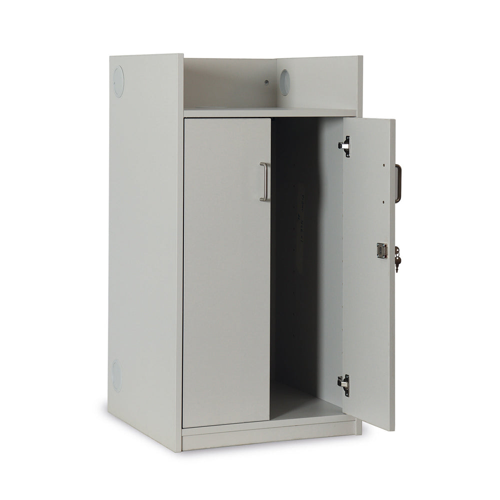 Introducing the Monarch classic lecternAdd a touch of class to your space with the Monarch classic lectern. Available in three sophisticated finishes, these lecterns combine 18mm MFC and matching ABS edging, providing strength, durability and stability.Monarchs lecterns come complete with locking doors and handles with a plinth to the floor, making for a useful built-in storage cupboard, enhancing convenience and space-efficiency.One adjustable shelf is a handy addition, allowing you to better use laptops and notes while presenting, and three separately located cable ports ensure that you'll always have the necessary power and connectivity.Monarch 5-year warrantyMonarch offer exceptional build quality, hand finished and functionally safe for use with the rigours of a busy classroom environment. They use high quality materials and components to ensure each unit is robust, rigid and sturdy. Each unit is constructed using 18mm FSC certified MFC, 2mm thick ABS edging and fitted together by cam and dowel construction. To back up this superb manufacturing, they offer a 5-year warranty as standard, with the products meeting BS EN 14073-3:2004 British Standard and EU equivalent in respect of strength, durability and stability.Sustainable manufacturing promisesMonarch's Forest Stewardship Council (FSC) certified MFC is manufactured in Chirk, Wales. 80% of the boards are recycled timber (a mix of hardwood & softwood coming from old furniture, pallets, cable reels) and the recycled content comes from the UK and the 20% non-recycled material is spruce/pine which is also grown in the UK. For every tree felled, two are re-planted.Classic lectern manufactured from 18mm MFC, 2mm ABS edging for extra durability and safety, Also features convenient storage cupboard, Complete with locking doors and handles for security, 3 cable-management ports, Dimensions of W550 x D550 x H1045mm