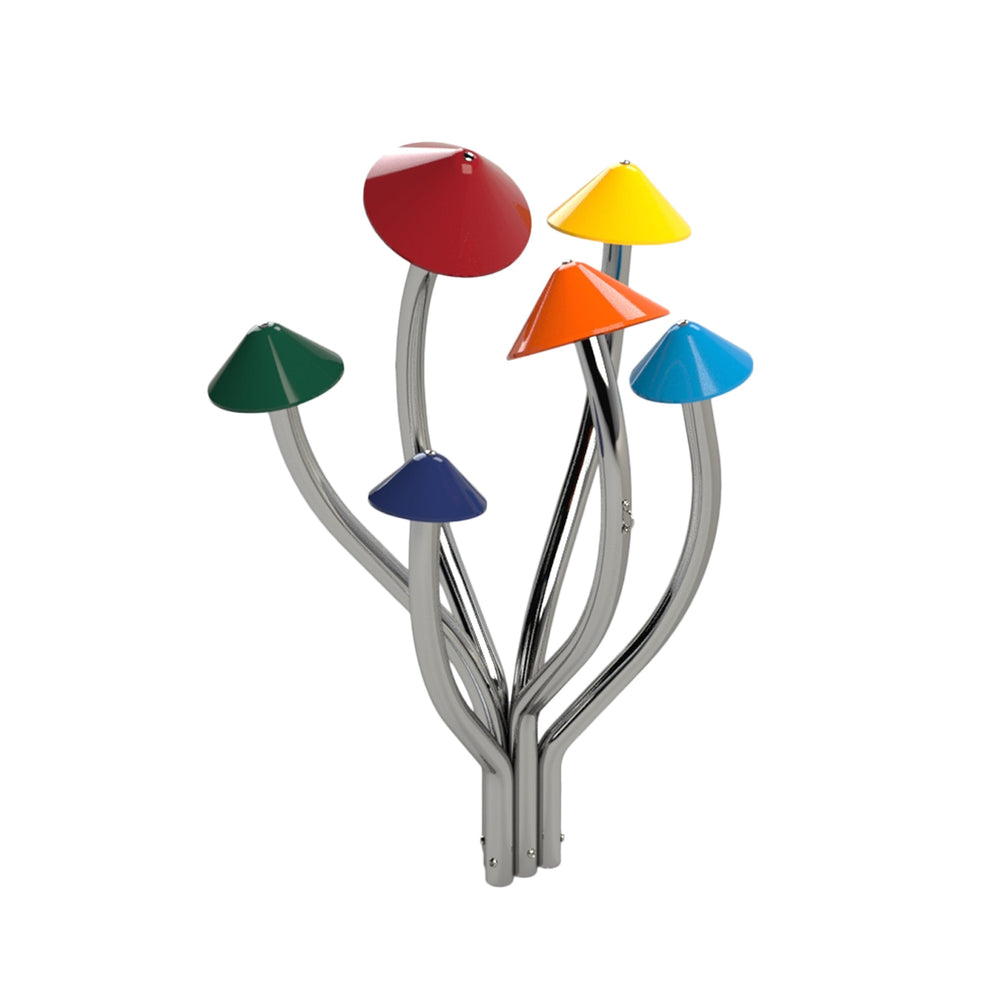 Introducing the Percussion Play liberty bellsThese colourful and visually stimulating liberty bells feature pentatonic tuning in C Major (C4-C5), which means that there are no wrong notes. Designed to look like small grassland mushrooms, with stainless-steel 'gills' on the underside of the caps, these aluminum bells will bring a little enchantment to the local schools, parks or gardens. Expertly crafted, they produce a soothing and magical sound, giving players an engaging sensory experience.This woodland-inspired instrument offers superior acoustic qualities and can accommodate up to 4 players. Soft, flexible mallets are attached to the sides, making it easier to produce gentle, great sounding music.Get everyone involvedThis inclusive play equipment provides multi-generational fun, allowing players of any age or ability to join in. It supports SEND learning by helping to improve hand-eye coordination, listening skills, and motor skills in an interactive and engaging way. The stand is also positioned at different heights and angles, making it accessible for both young children and elderly or disabled musicians.Built for outdoor useThe Percussion Play liberty bells are built from durable, weather-proof materials that perform well in even the most challenging outdoor environments. The cluster of six powder-coated conical 'caps' are securely attached to sturdy wiggly-shaped metal poles, making them strong and long-lasting.Excellent warranty providedPercussion Play's manufacturing processes are consistently of the highest quality, and on top of that they offer unrivalled warranties on their products:Limited 25 Year Warranty - on metalwork used in the supporting structure of stands and frames, against structural failure caused by deterioration due to exposure to weather or by defective materials or workmanship.Limited 10 Year Warranty - on timber, composite, aluminium and stainless steel components (includes notes and fixings), against structural failure caused by deterioration due to exposure to weather or by defective materials or defective workmanship.Limited 2 Year Warranty - on mallets and other components used in the initiation of percussive sound on Percussion Play instruments.NB: These Limited Warranties do not include fading of colours, damage due to excessive wear and tear, vandalism, or negligence.Surface mounted vs Ground installThere are two ways to install this Percussion Play product:Surface mountedThe leg is attached to a base plate, which is then fixed into the ground using anchors. This provides a brilliant level of stability, whilst making it possible to move the product around with relative ease.Ground installThe leg is directly embedded into the ground, providing excellent, long-lasting stability. However, once placed, the instrument will be very hard to move - perfect for permanent installations.Installation instructions included below.Installation instructionsGround install instructionsSurface mount instructionsVibrant and eye-catching mushroom-themed liberty bells, Inclusive play instruments, perfect for all ages and abilities, Produces an enchanting song when struck with the attached mallets (C4-C5), Securely mounted onto durable stainless steel posts, Perfect for outdoor use in playgrounds and sensory gardens, Pentatonic tuning ensures there are no wrong notes