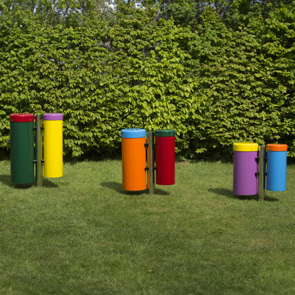 Introducing the Percussion Play congas trioThese conga drums from Percussion Play are vibrant to look at, exciting to play, and robust enough to survive in the great outdoors! Perfect for all ages and abilities, they are an ideal inclusive play instrument for school playgrounds, parks and other shared spaces.The Congas are made from a pair of single-headed drums mounted onto a stainless steel post to be installed directly into the ground. Made with heavy-duty ABS caps, these strong and durable drums are painted in a variety of bright colour combinations for visual appeal.Perfect for playscapesThese congas are supplied as a trio of three pairs, and can be fixed strongly into or onto the ground, making them practically immovable for the average user. This, in combination with the hard-wearing materials used, make them excellent for permanent outdoor installations. The congas produce a deep, soft, yet booming sound which cuts through the air even outside! Each respective pair of congas can also be purchased individually.Excellent warranty providedPercussion Play's manufacturing processes are consistently of the highest quality, and on top of that they offer unrivalled warranties on their products:Limited 25 Year Warranty - on metalwork used in the supporting structure of stands and frames, against structural failure caused by deterioration due to exposure to weather or by defective materials or workmanship.Limited 10 Year Warranty - on timber, composite, aluminium and stainless steel components (includes notes and fixings), against structural failure caused by deterioration due to exposure to weather or by defective materials or defective workmanship.NB: These Limited Warranties do not include fading of colours, damage due to excessive wear and tear, vandalism, or negligence.Surface mounted vs Ground installThere are two ways to install this Percussion Play product:Surface mountedThe leg is attached to a base plate, which is then fixed into the ground using anchors. This provides a brilliant level of stability, whilst making it possible to move the product around with relative ease.Ground installThe leg is directly embedded into the ground, providing excellent, long-lasting stability. However, once placed, the instrument will be very hard to move - perfect for permanent installations.Installation instructions included below.Installation instructionsGround install instructionsSurface mount instructionsVibrant, exciting and robust conga drums, Inclusive play instruments, perfect for all ages and abilities, Producues a deep, soft, yet booming sound, Mounted on a sturdy stainless steel post, Supplied as a trio, perfect for outdoor use, Includes small, medium and large conga drums