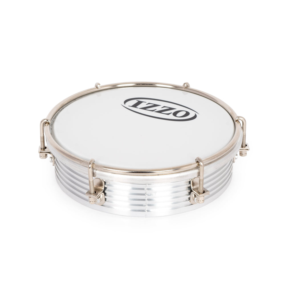 Introducing the Izzo 6'' aluminium tamborimThis affordable and lightweight tamborim is made from durable grooved aluminium and features a classic design with only 6 hooks. Its designed to be comfortable to hold and play, making it an ideal tamborim for turning techniques and a great instrument for beginners and schools.The tamborim is not suitable for extremely high tuning, it sounds best in the mid and lower tuning ranges.The Izzo brandThe Izzo brand represents authentic Brazilian percussion and is widely regarded as one of the top instrument manufacturers in Brazilian Samba. Hailing from Sao Paulo, Izzo have been producing a wide range of high quality instruments for over 60 years, and we are proud to say we are the sole importers of Izzo products.Samba instrument care and maintenanceIzzo manufacture quality, authentic Brazilian samba drums and percussion which they have been doing for over 60 years. Their products are hugely popular in schools, colleges and with performing samba ensembles the world over. With the correct care and attention, these instruments should provide musical satisfaction and energetic performances for many years. Here are just a few tips to keep your samba gear in optimal condition.Before and after playingWe recommend wiping the drums and beaters down with a damp cloth, as well as inspecting the tuning adjusters on each drum to check for any loose nuts. As a part of this process, you can also monitor the tension of the heads. If you find that an adjuster has come loose or a head seems slack, loosen off the entire head to thumb-tight and then re-tune using the included mini spanner. The best way to do this evenly is to tune opposite pairs, and the following diagram will give you the correct order in which to tune various sizes of surdo, caixa, repinique and tamborim:The schematic above demonstrates the correct order for tightening the nuts onto the hooks of a Surdo. This way the tension is spread most evenly. Start with all the nuts just finger tight and then tighten each nut in turn by half a turn (starting with nut number 1, then 2, then 3 etc.). When you've tightened all the nuts, check the tuning. If a higher pitch is needed, repeat the process (again starting with nut number 1) by a quarter turn at a time and carry on until you're happy with the sound.When tuning a set of three surdos (14", 16" and 18") start with the 18" and tighten it until the sound is nicely resonant (not "flat"). The tune the 16" until the pitch is higher than the 18". Finally tune the 14", again to a higher pitch than the 16".If you're tuning more than one surdo of each size, tune all the 18" first, then all the 16" etc. Use the same order for tightening the nuts on the Caxia, Repeniques and Tamborims.Great quality anodized aluminium tamborim, 6" head diameter, 45mm height, Authentic Brazilian made instrument, Produces a warm and rich tone, Lightweight, durable and easy to hold