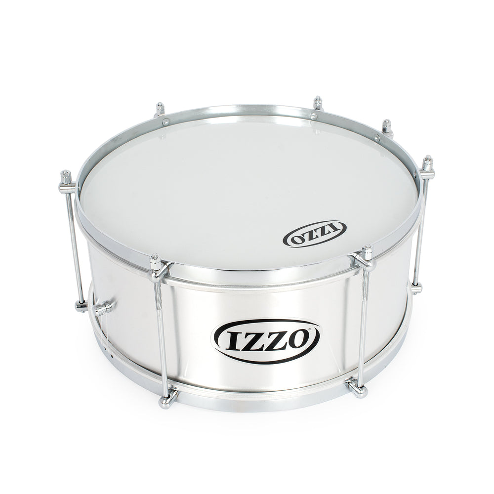 Introducing the Izzo 14'' caixa de guerraIzzo's 14'' caixa de guerra is a powerful percussion tool for the samba style. This lightweight drum is perfectly dynamic for samba music, with a clear and vivid tone that packs a punch without being unwieldy. At 14'' x 15cm, it is also highly portable which is ideal for schools and music hubs putting together their own samba bands.A great rhythmic utilityThe name 'caixa de guerra' translates from Portuguese to mean 'War Drum', as this snare was originally used in military settings to keep marching time. As a result, we recommend it for any samba band, where unity in rhythm and tempo is always crucial!The Izzo brand - authentic but affordableThe Izzo brand represents authentic Brazilian percussion and is widely regarded as one of the top instrument manufacturers in Brazilian Samba. Hailing from Sao Paulo, Izzo have been producing a wide range of high quality instruments for over 60 years, and we are proud to say we are the sole importers of Izzo products.Samba instrument care and maintenanceIzzo manufacture quality, authentic Brazilian samba drums and percussion which they have been doing for over 60 years. Their products are hugely popular in schools, colleges and with performing samba ensembles the world over. With the correct care and attention, these instruments should provide musical satisfaction and energetic performances for many years. Here are just a few tips to keep your samba gear in optimal condition.Before and after playingWe recommend wiping the drums and beaters down with a damp cloth, as well as inspecting the tuning adjusters on each drum to check for any loose nuts. As a part of this process, you can also monitor the tension of the heads. If you find that an adjuster has come loose or a head seems slack, loosen off the entire head to thumb-tight and then re-tune using the included mini spanner. The best way to do this evenly is to tune opposite pairs, and the following diagram will give you the correct order in which to tune various sizes of surdo, caixa, repinique and tamborim:The schematic above demonstrates the correct order for tightening the nuts onto the hooks of a Surdo. This way the tension is spread most evenly. Start with all the nuts just finger tight and then tighten each nut in turn by half a turn (starting with nut number 1, then 2, then 3 etc.). When you've tightened all the nuts, check the tuning. If a higher pitch is needed, repeat the process (again starting with nut number 1) by a quarter turn at a time and carry on until you're happy with the sound.When tuning a set of three surdos (14", 16" and 18") start with the 18" and tighten it until the sound is nicely resonant (not "flat"). The tune the 16" until the pitch is higher than the 18". Finally tune the 14", again to a higher pitch than the 16".If you're tuning more than one surdo of each size, tune all the 18" first, then all the 16" etc. Use the same order for tightening the nuts on the Caxia, Repeniques and Tamborims.Powerful aluminium caixa de guerra, 14" head diameter, 15cm height, Authentic Brazilian instrument manufactured in famous Sao Paolo factory, Nylon head, alumninium shell with chrome hardware, Lightweight, sturdy and easy to hold