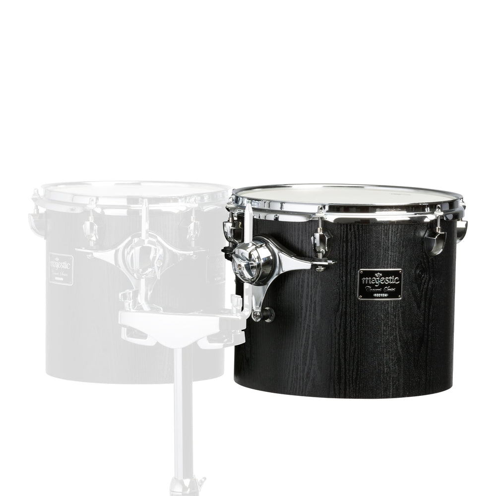 Introducing the Majestic Concert Black single headed concert toms Concert Black Toms Feature 100% Birch shells with SONIClear bearing edges, low-mass lugs and the I.T.S. mounting system to maximise tonal resonance. Available in both single and double-headed configurations, Concert Black toms are sold in sets of two and include a double stand. Producing an open tone with great projection, they are perfect for an array of orchestral, concert band, and educational settings. Fitted with a Remo UT clear drum head, each tom can be precisely tuned with the attractive chrome lugs. These toms are finished with the Nightwood Black Vertical Wood-grain Covered Finish for a classy, modern look. Please note: toms supplied individually. For a set, select the two toms of your choice and combine with the Majestic concert stand for two toms to complete your purchase. About Majestic Majestic is a brand of thoughtfully designed instruments for the professional, the educator, and today’s percussion student utilising carefully constructed ideas born from both traditional percussion instrument heritage and a culture of innovation. The family firm was founded in 1921, supplying organs, pianos and wind instruments with the production of percussion following shortly after. In 1960 the Majestic brand name was introduced, starting with drum kits which were prevalent among rock bands in the Netherlands. Orchestral and marching percussion soon became the corner stone of the brand, with timpani, marching drum and tuned percussion becoming areas of speciality for Majestic. To this day product development, engineering, and production are overseen by family members and every model must adhere to stringent standards of craftsmanship and performance. Please note: all large tuned percussion instruments such as xylophones, marimbas, and vibes etc. are delivered boxed and require assembly.Single headed for open projecting tone, 100% Birch Shell, SONIClear Bearing Edge with Chrome Hardware Fittings, Nightwood Black Vertical Wood-grain Covered Finish, Remo UT Clear Head, Priced per drum, supplied individually