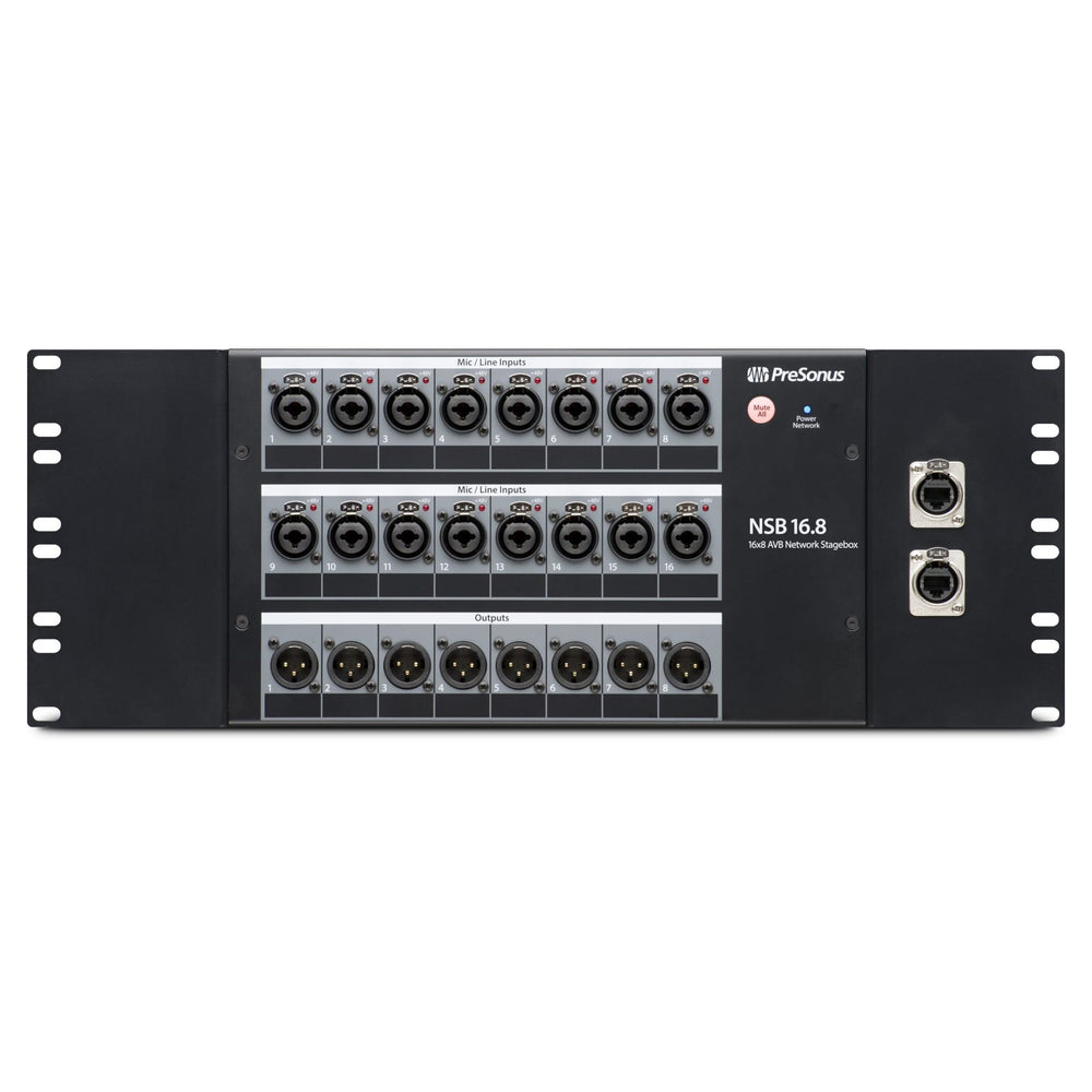 Introducing the PreSonus NSB16.8 rack mounting kitMount your NSB168 securely to any standard 19'' Rack Unit. Comes with Cat6 patch cables to bring your RJ45 connections to the front of the unit for easy access. Sturdy metal rack ear mounting kit for PreSonus NSB 16.8, Installed Size = 19 x 7 in (4U), , , ,