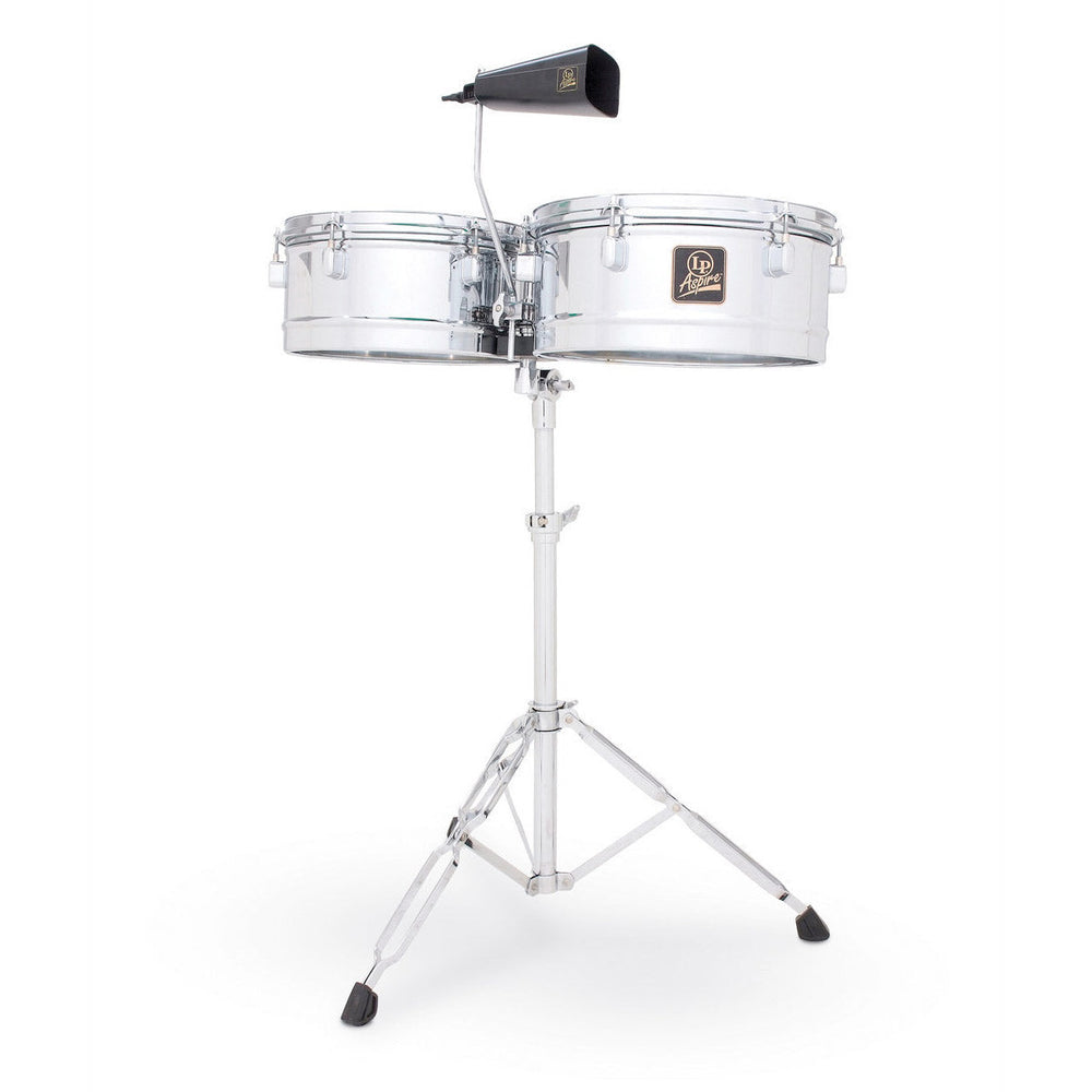 Whether you are using them traditionally or as part of a kit, the LP Aspire timbales are the perfect choice. Featuring 13" and 14" steel shells with a drum tuning system, they are convenient to use and sound great.Typically found in many forms of Latin American music, a good set of timbales is essential to give that classic latin feel. These timbales from LP are ideal for the touring percussionist, professional live performances and studio work.Supplied with an LP Aspire cowbell and drum key.13" & 14" shell diameter with 6 1/2" depth, Drum key tuning system, Steel shells with brushed nickel finish, Includes LP Aspire cowbell, timbale stand, drum key, ,