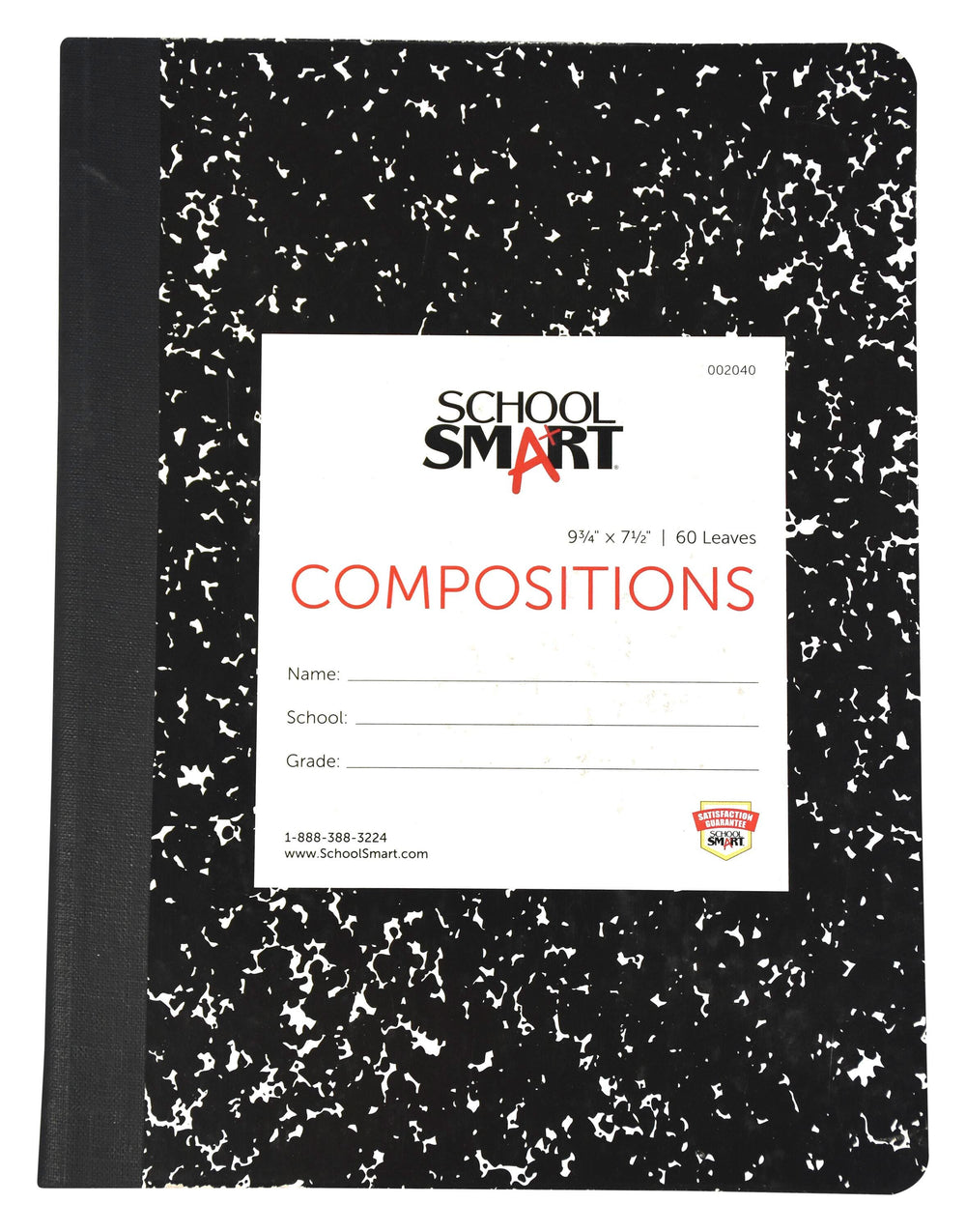 School Smart Hard Cover Ruled Composition Book, 60 Sheets, 9-3/4 x 7-1/2 Inches