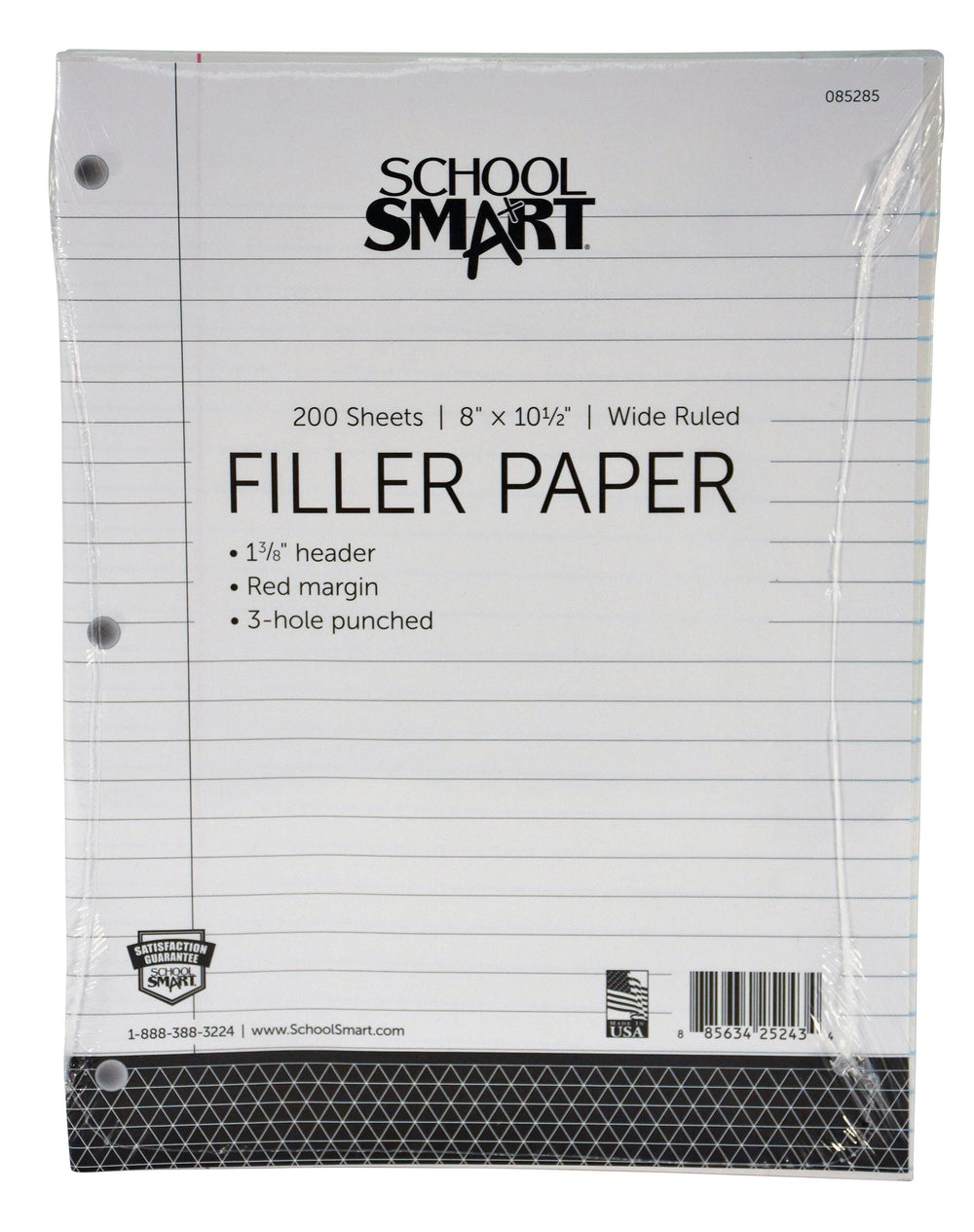 School Smart 3-Hole Punched Loose Leaf Paper, 8 x 10-1/2 Inches, 200 Sheets