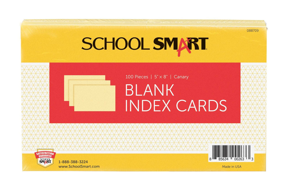 School Smart Unruled Index Cards, 5 x 8 Inches, Canary, Pack of 100