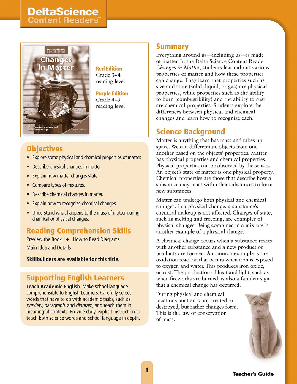 Delta Science Content Readers Changes in Matter Red and Purple Teacher's Guide
