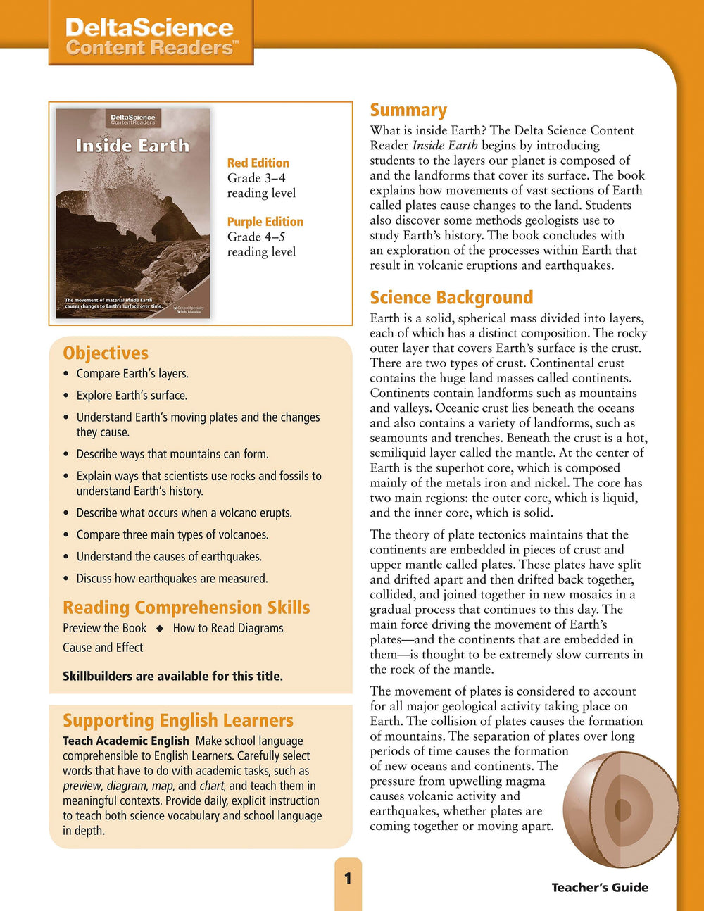 Delta Science Content Readers Inside Earth Red and Purple Teacher's Guide