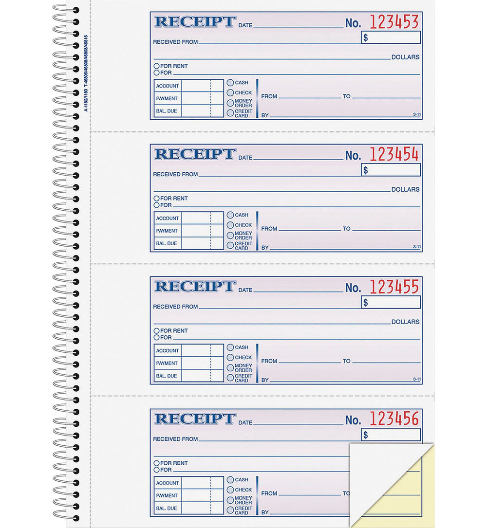 Adam 2 Parts Carbonless Spiral Bound Money/Rent Receipt Book, 11 X 7-5/8 in, White/Canary, Pack of 200
