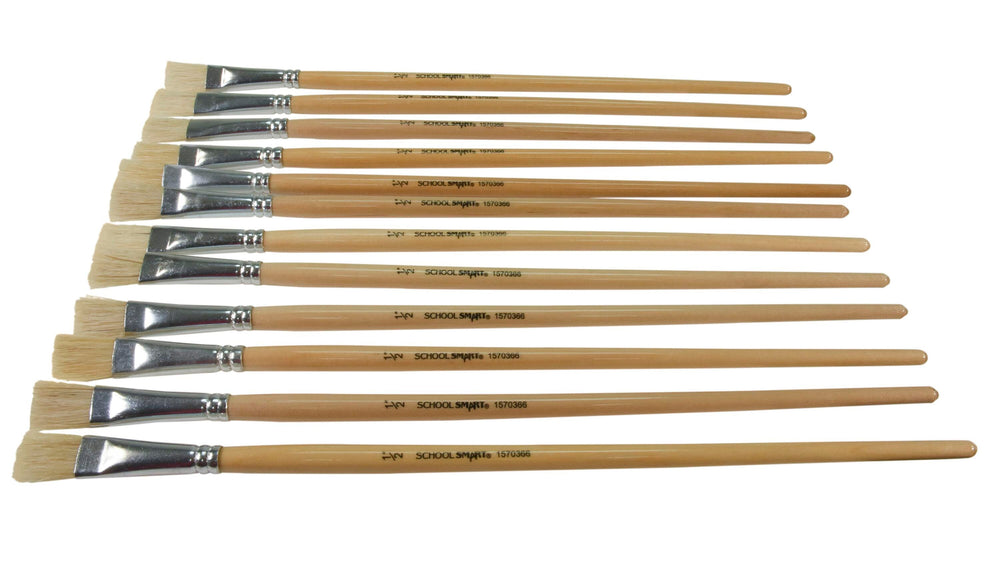 School Smart White Bristle Paint Brushes, Long Handle, 1/2 Inch, Set of 12