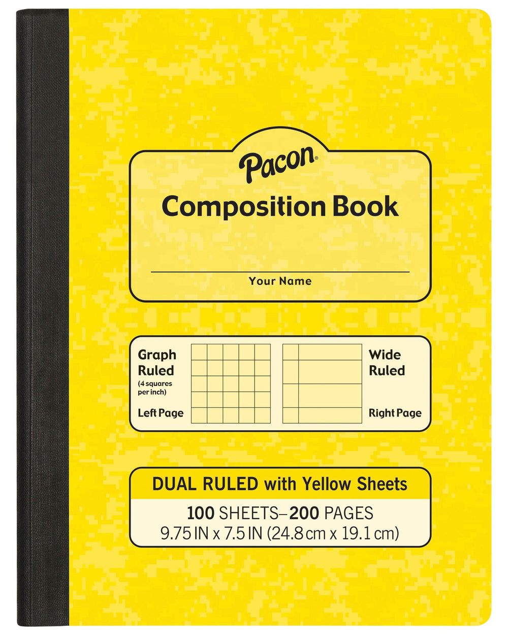 Pacon Dual Ruled Composition Book, Yellow, 9-3/4 x 7-1/2 Inches, 100 sheets