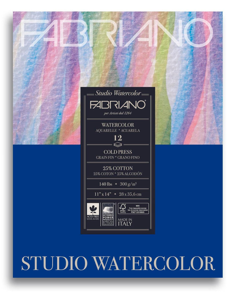 Fabriano Studio Watercolor Cold Press Pad, 11 x 14 Inches, 140 lb ,12 sheets