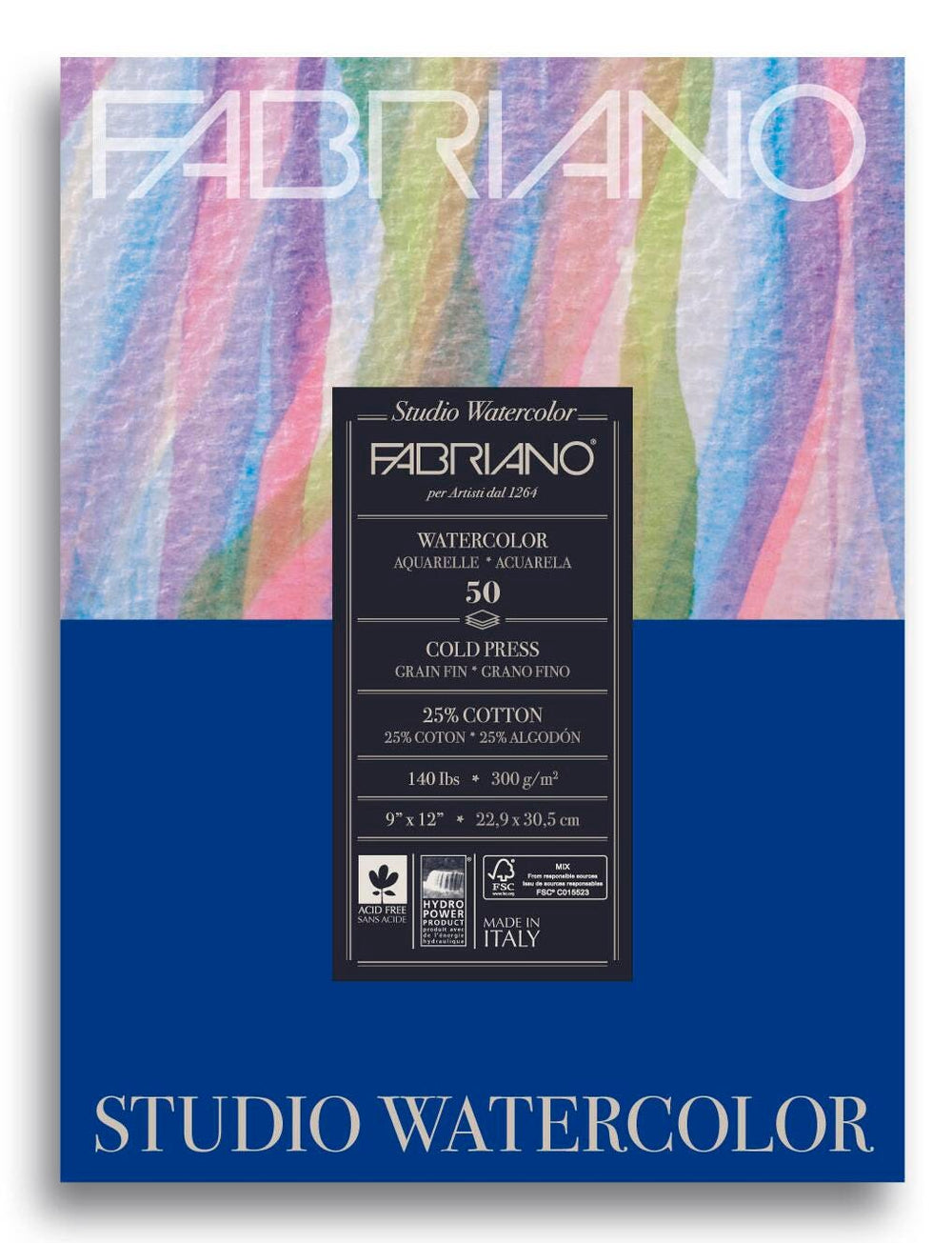 Fabriano Studio Watercolor Cold Press Pad, 9 x 12 Inches, 140 lb, 50 sheets