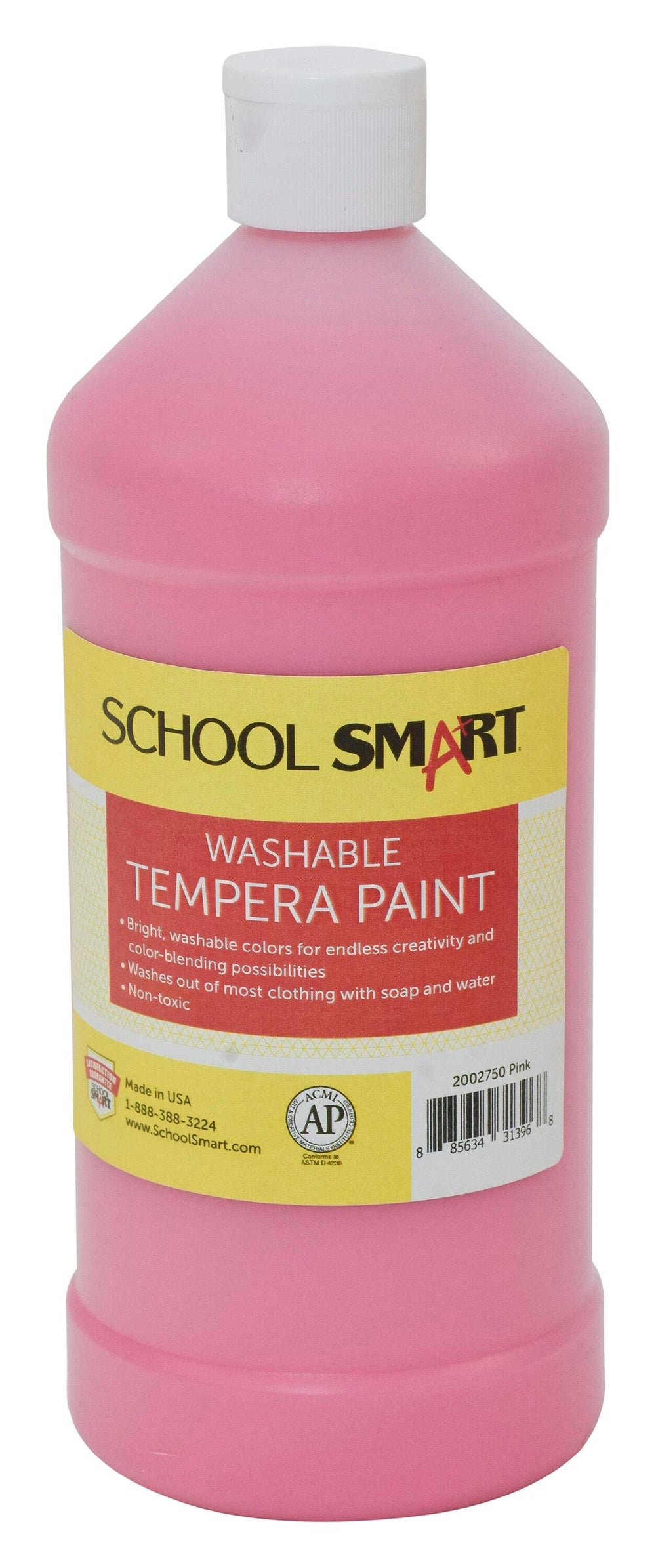 School Smart Washable Tempera Paint, Pink, 1 Quart Bottle
