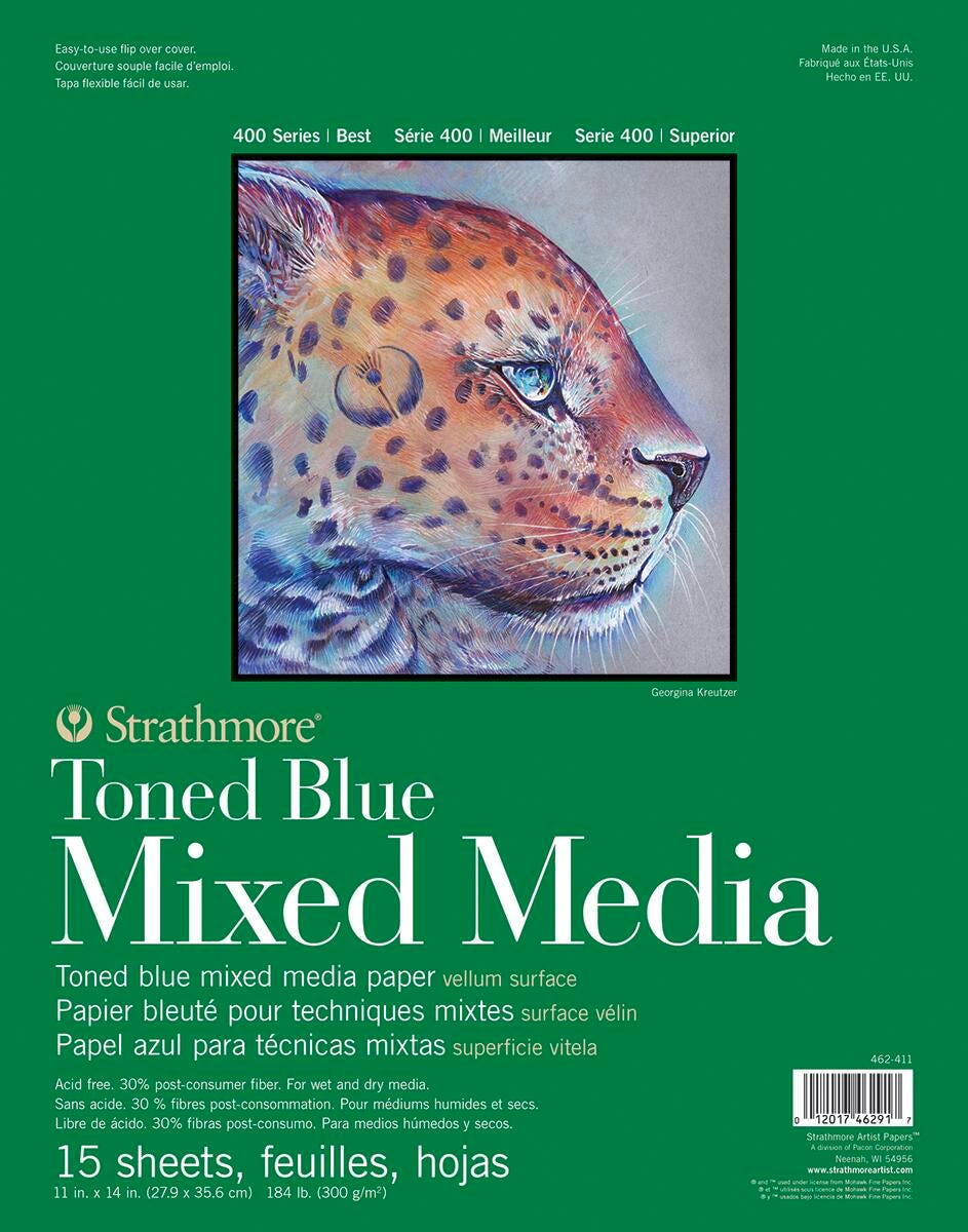 Strathmore 400 Series Toned Blue Mixed Media Pad, 11 x 14 Inches, 184 lb, 15 Sheets