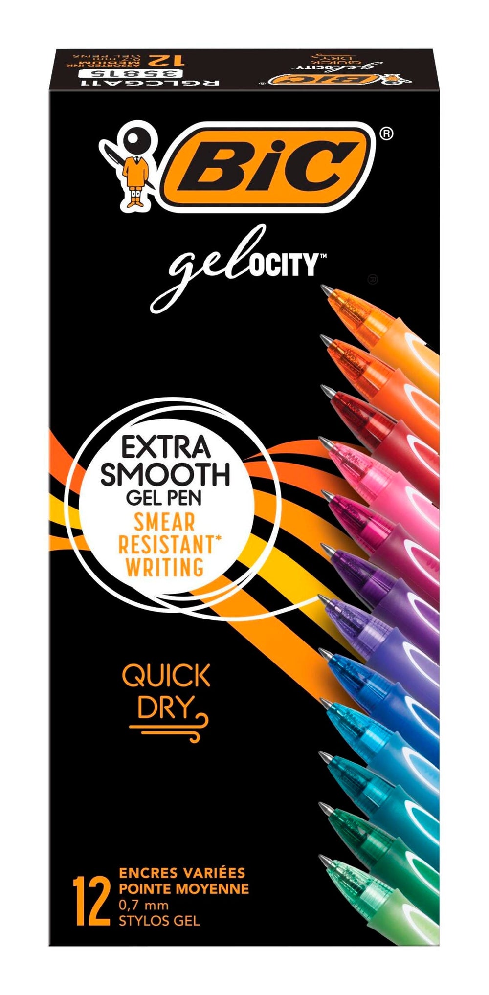 BIC Gel-ocity Quick Dry Retractable Gel Pens, 0.7 mm, Assorted Fashion Colors, Set of 12