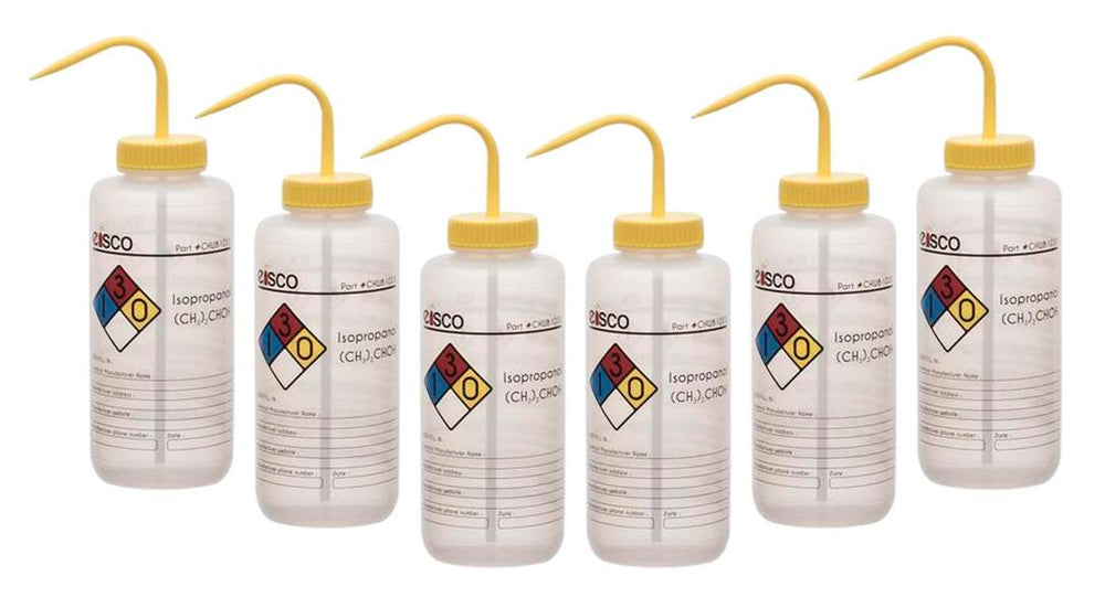 Eisco Labs Isopropanol Wash Bottle, 1000 mL, Wide Mouth, LDPE (4 color), Pack of 6