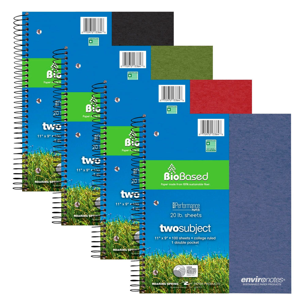 Roaring Spring 2 Subject Environotes Notebook, College Ruled, 11 x 9 Inch, White, 100 Sheets