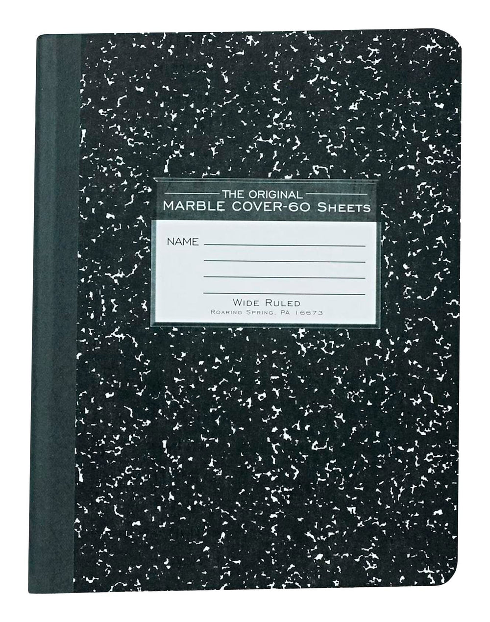 Roaring Spring Composition Book, 9-3/4 x 7-1/2 Inches, Black Marble, Wide Ruled with Margins