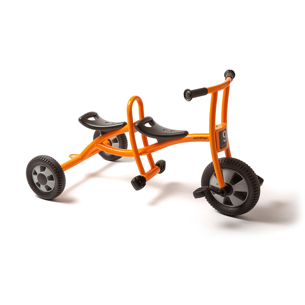 With a combination of modern design and heavy duty build the Circleline range stimulates gross motor, creativity and social skills. A taxi is lots of fun and provides many great play ideas. The children love the role-playing games bringing extra features and imagination into their play with their friends - one child drives whilst the other enjoys the ride. Children can learn to take turns as they share the adventure of riding a taxi trike for two. 3 year warranty on frame and fork , Raw Materials: Manufactured from heavy duty steel and impact resistant powder coating that will last for many years. Solid puncture proof rubber wheels. Tough plastic seating. Tested to relevant safety standards., Dimension : 600 x 630 x 1100 , Age range : Ages 3 to 7