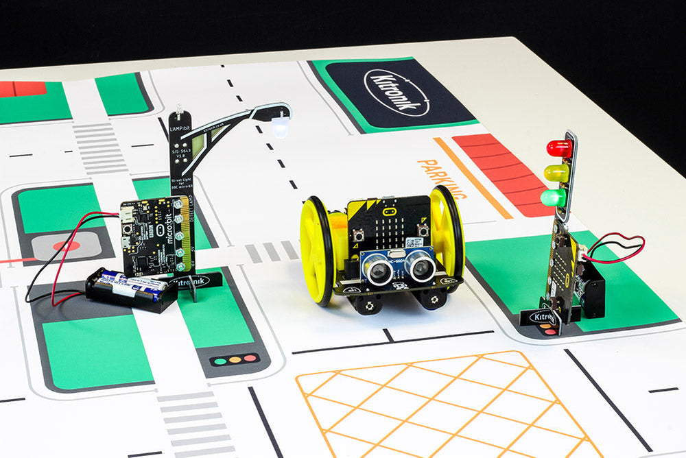 The town mock-up side provides a great place to set up traffic projects, where other props can be used. Things such as LAMP:bit, STOP:bit, and also ACCESS:bit can be utilised to great effect.