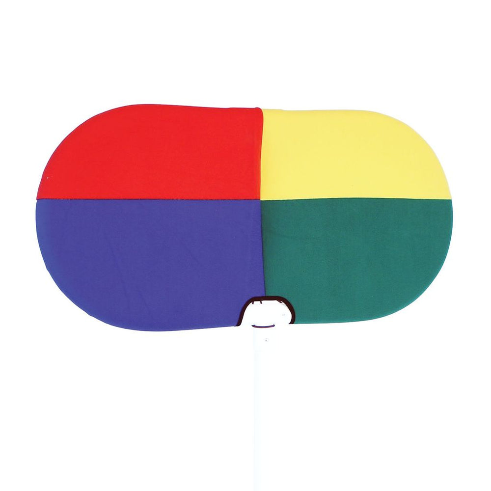 The Throwing Target hook and loop Cover _ ts neatly over the Bishop Play-sport® Throwing Target (SE4550) to make a perfect aid for teaching co-ordination and colour recognition with hook and loop Bean Bags, hook and loop Scarves or hook and loop Balls. Target area size: 90 W x 30cm H.