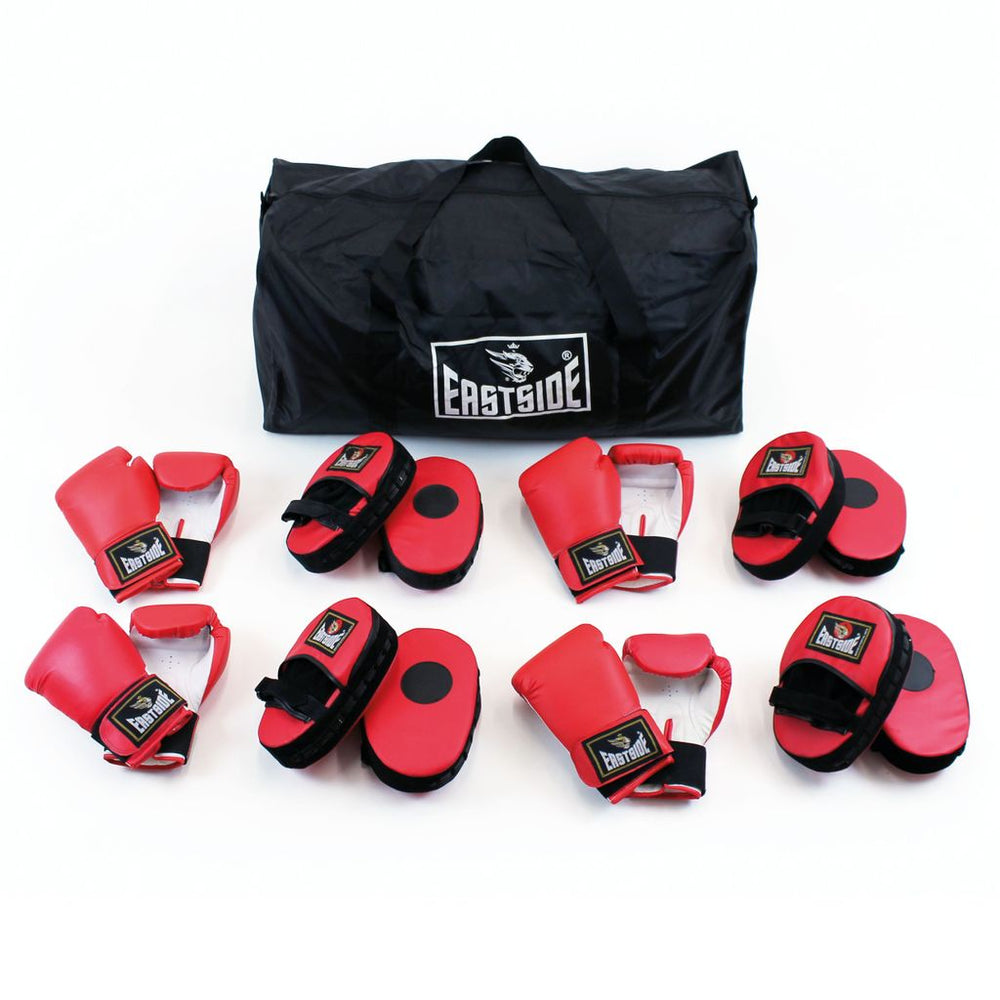 Set contains 4 Active Training 10oz Gloves, 4 Active Hook and Jab Pads and a holdall.
