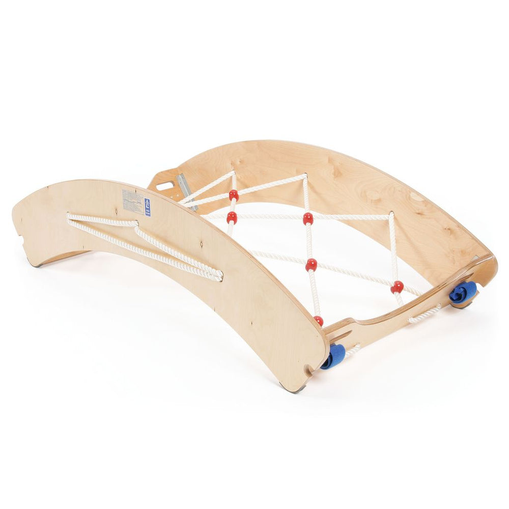An exciting part of the Gym Time© range, the Scramble Net features as part of the Gym Time© Support Pack activities. It offers children the challenging experience of working with a flexible climbing medium on the floor, or can act as a bridge or an inclined route onto Trestle Tops. The rigid sides help to provide security for use by pre-school children, and the unit features the Gym Time© unique Saddle Bracket & hook and loop fixing system. Size: 160 L x 84cm W.