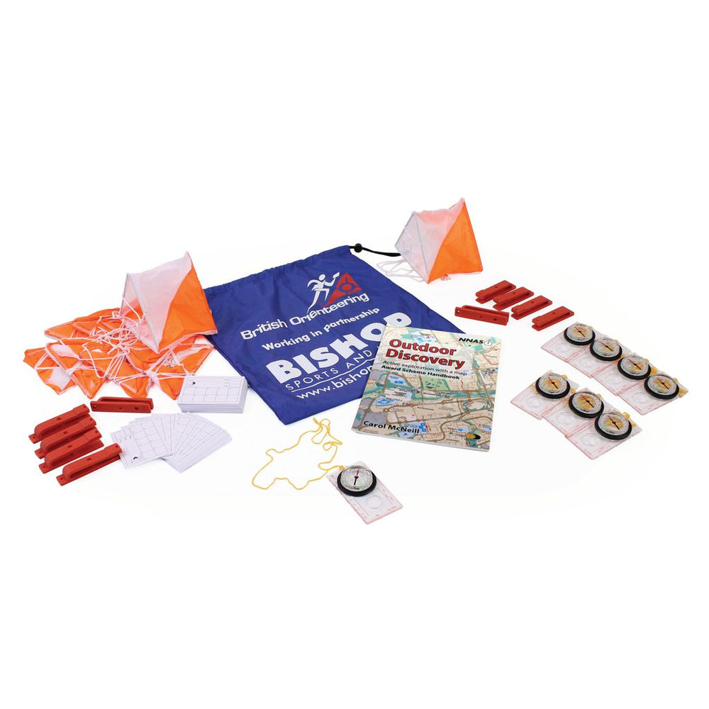 A convenient bag containing all you need to teach orienteering and set up a course for your class, many of the contents themselves are endorsed by the National Governing Body. The contents include 10 Flags (Size 15 L x 15cm W), a Set of 10 Coded Punches, 8 Educational Compasses, a Set of 100 School Control Cards and with an optional 'Orienteering