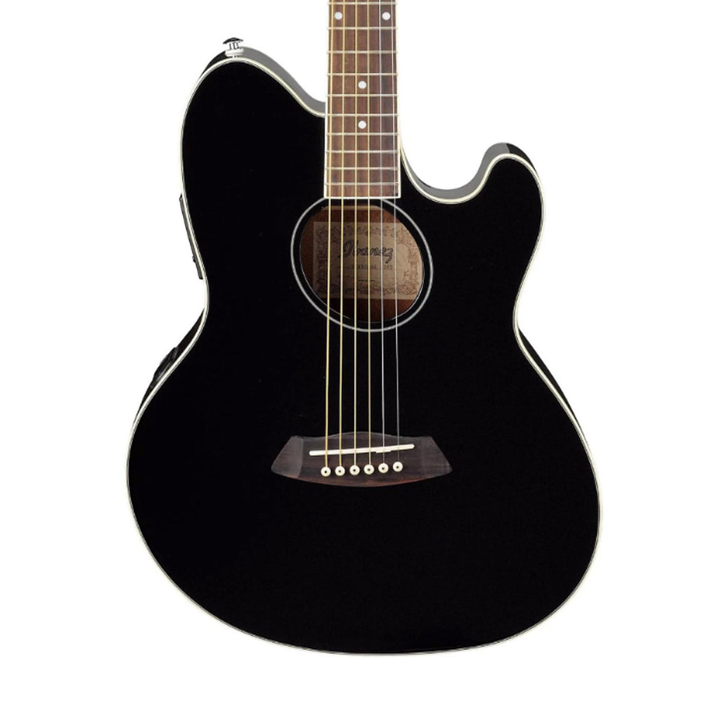 • Quality beginner electro acoustic guitar • Okoume neck for greater playing comfort • Purpleheart fretboard & bridge • AEQ-2T preamp w/Onboard tuner • Features Advantage bridge pins • Gorgeous black high gloss finish, Introducing the Ibanez Talman electro acoustic guitar This electro acoustic guitar is from Ibanez, a brand renowned for their quality, playability, and craftsmanship for all levels and styles of playing. The TCY10E features a Talman Double Cutaway body with a Spruce top, Sapele back & sides, and an Okoume neck that allows for greater playing comfort. This guitar is built with an AEQ-2T preamp, which is specifically designed to adjust the frequencies of a bass and treble, and allows operation of the built-in tuner without the instrument being plugged in. It also features a Purpleheart fretboard & bridge, which produces a rich mid-range with a crisp high end. These electro acoustic guitars are perfect for enthusiastic beginners ready to practice or perform. Advantage bridge pins The TCY10E uses Ibanez Advantage™ bridge pins. These pins really are an advantage over old-fashioned pins. Advantage pins are easier to take out and easier to put in than standard pins. A special bulb-shaped end makes the pin easy to grip and also prevents the pin from being pushed in too far. Best of all, with Advantage the pin and string stay put.