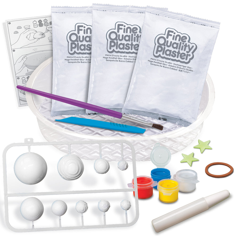 Glow Brightly: Create Your Stellar Stone Decor! Craft unique solar system stones with a glowing effect! This complete kit features detailed moulds, artistic supplies, and enhances creativity, fine motor skills, and STEM learning for an engaging crafting experience. The Mould & Paint Solar System Stone kit offers a creative activity where children can mould and paint personalized solar system stones for unique decor. It features glow-in-the-dark stars that create a cosmic, glowing effect. This complete kit contains all necessary materials, including plaster powder and tools, along with a planet mould to craft various planets using the included mixing tray. Artistic supplies such as coating paint, a paintbrush, and a carving tool allow for detailed designs. Step-by-step instructions guide users through the process, with a QR code for translated instructions. This kit encourages artistic expression while enhancing fine motor skills through moulding and painting. Additionally, it introduces space and solar system concepts, fostering STEM learning and developing problem-solving skills as children follow instructions and create their designs. The Mould & Paint Solar System Stone kit allows children to mould and paint personalized solar system stones for unique decor, featuring glow-in-the-dark stars for a cosmic effect. This complete kit includes all necessary materials, such as plaster powder, tools, and a planet mould for crafting various planets. It comes with artistic supplies like coating paint, a paintbrush, and a carving tool for detailed designs, along with step-by-step instructions and a QR code for translated guidance. This activity fosters creativity, enhances fine motor skills, introduces space concepts, and develops problem-solving abilities through hands-on crafting.