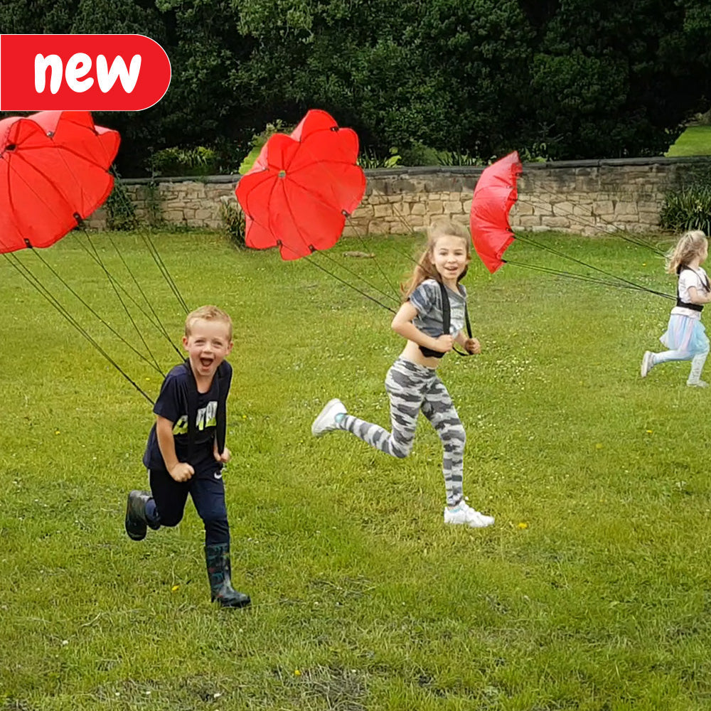 This very large resistance parachute is ideal to encourage children to run. Not only can it be used as a fun outdoor activity, it can also be used to learn about the effects of air resistance. Perfect for Sports Day and races.