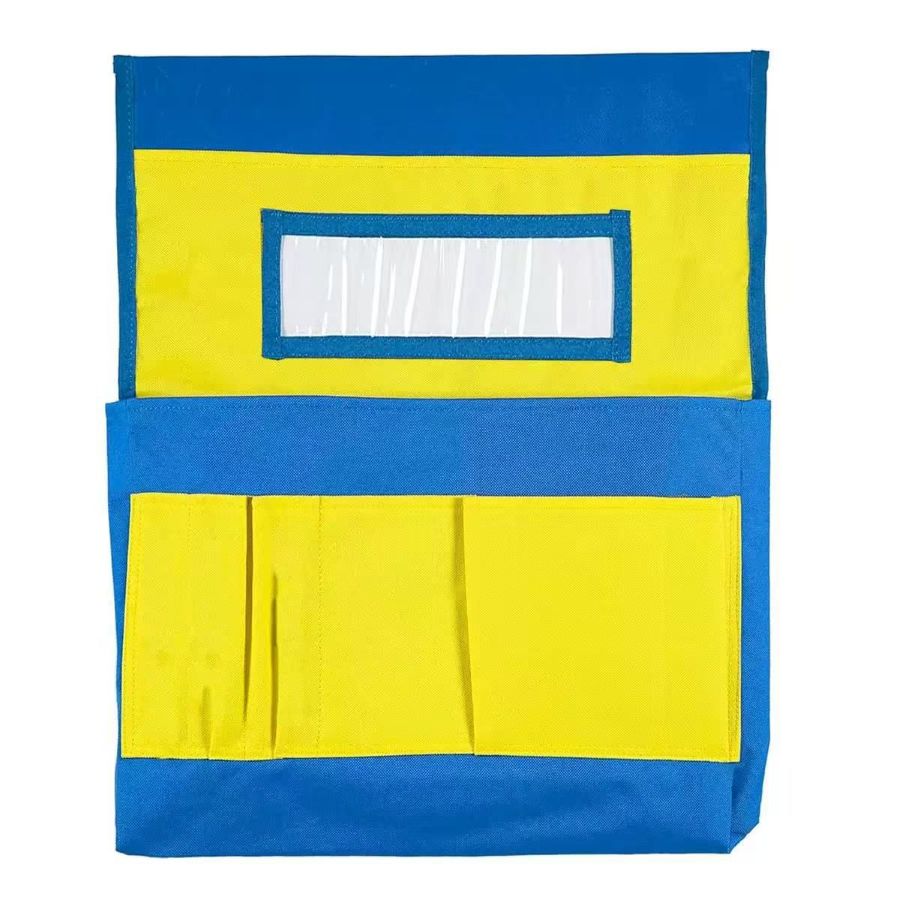 Easily slide seat back pocket on the back of a chair to instantly storage books, papers, pens, school supplies and more.