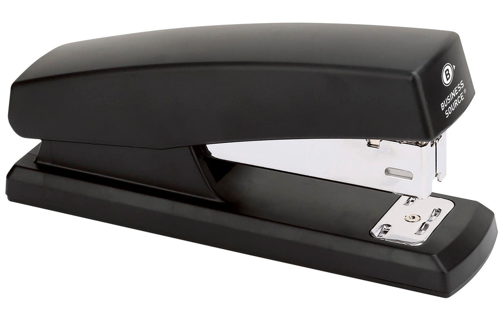 Business Source Half-Strip Stapler, 20 Sheets Capacity, 105 Staple Capacity, Black