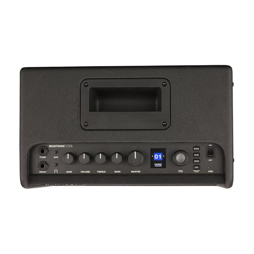 Introducing the Fender Mustang LT25 25W guitar combo amplifierThis amp incorporates what Fender has learned over decades of producing the best-sounding guitar amps on the planet. It’s ideal for beginners and students, with a super-simple user interface and a collection of 30 presets covering a wide range of music—a “greatest hits†of electric guitar tones. The versatile signal chain with high-quality on board amp and effects models produces amazing tones, making it an ideal practice amp for home or office.Fantastic presets and effectsWith 30 loaded presets plus 20 more that are easily accessible, the Mustang LT25 offers a plethora of tones that work for almost any genre of music. You can also play with various vintage classics from Fender and others, plus a collection of modern high-gain models.Create a multitude of unique sounds with the on board effects—including multiple distortion, overdrive, compression, modulation, reverb, delay and octave effects. Get your guitar in tune quickly and access the chromatic tuner at the push of a button.Great connectivityThe LT25 features USB connectivity meaning you can easily record tracks in your DAW of choice or update your firmware if necessary. There is also a stereo auxiliary so you can jam along with your favourite tracks using the convenient stereo aux input.Our Fender Mustang range Fender Mustang Micro guitar amplifier Fender Mustang LT25 25W guitar combo amplifier Fender Mustang LT40 40W guitar combo amplifier Fender Mustang LT50 50W guitar combo amplifier Fender Mustang GTX guitar modelling combo amplifierA versatile amplifier with a user friendly interface perfect for students and beginners, 25 watt, 8" speaker, Single channel along with 25 effects to create a multitude of unique sounds, Compact and easy to fit into any practice space, 1/4" input and USB connectivity, Features 60 presets and a chromatic tuner