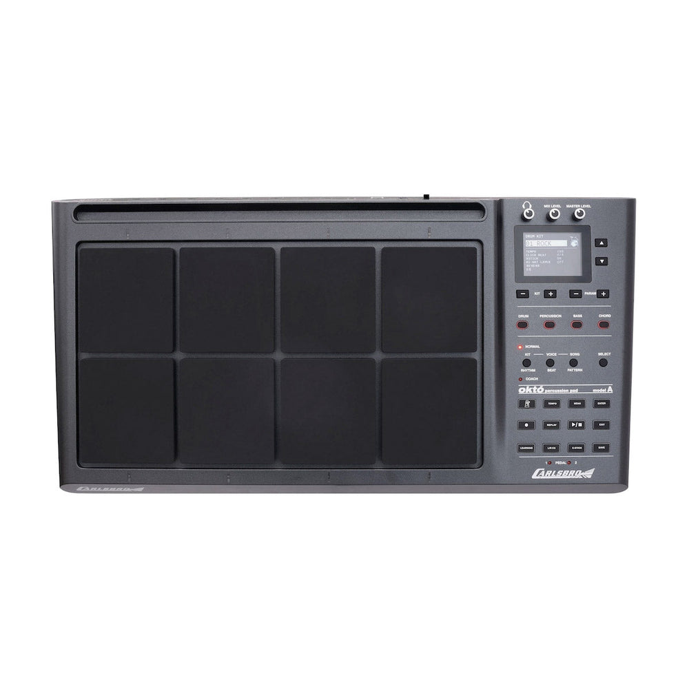 Introducing the Carlsbro OKTO A electric drum padThe Okto A percussion pad set features 8 high response, hard wearing, user configurable rubber pads. 2 switch pedals to control bass drum and hi hat. 408 drum voices, 30 preset drum kits, 20 user drum kits. Record, playback, demo and teaching functions including powerful step by step snare, rhythm and complete drum set practice/teaching modes.Easily reversible pad interface to suit left & right handed drummers at the press of a button. 5V Micro USB power input for portable use via an external mobile power bank. USB connection for sending and receiving MIDI data. Bluetooth MIDI data transmission to connect to your favourite drum tutor software. And expansion sockets to connect external pads, cymbals and pedals for greater flexibility.Including a pair of pedals for bass and hi-hat control and a pair of drumsticks. Optional OKTO A stand and bag also available.2.8″ TFT LCD display, 408 high quality percussion voices, Recording and playback facility, USB MIDI interface (USB to device), 30 preset drum kits, Bluetooth MIDI connectivity