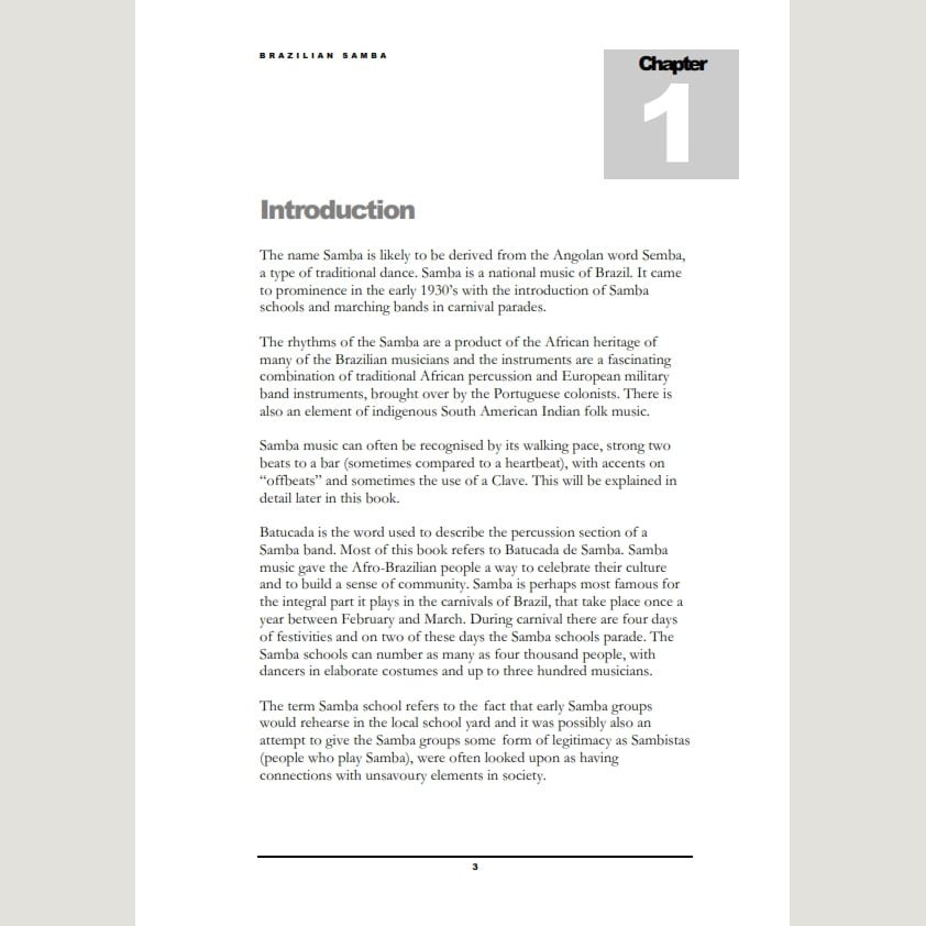 Samba is one of Andy Gleadhill’s growing range of Teacher’s guides for classroom instruments. This Samba guide has been written to help non-specialists introduce Samba playing to whole class as well as smaller groups. As with all Andy’s teaching guides, this is based on years of teaching experience and is highly practical and down to earth. It assumes no prior knowledge of the Samba style and you don’t even need to be able to read music to teach it effectively. The guide contains a series of lesson plans which will take you and the class through from scratch to your first performance in just 8 weeks.There’s also useful audio and video support online.Chapters includeIntroductionThe Instruments of SambaThe Layout of the BandBasic Playing TechniquesMusical NotationElements of MusicWarm-up ExercisesCall and responseThe Clave ExplainedTeaching and Learning NotesCreating a PerformanceTen TunesAccompaniment tracks available, with professionally produced performances, Clear and practical layout, No previous samba or music teaching experience needed, Specially written to help teach Brazilian samba and rhythms to classes, ,