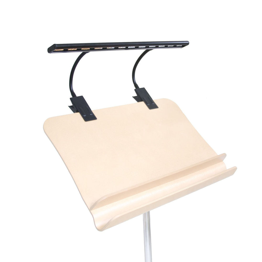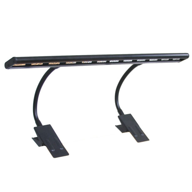 The Double Duo Clip-on Light is a professional quality, mains driven lamp that can be found in many venues throughout the world. It is bright enough for any situation and yet the superb cut off ensures that the light falls on the music score and nowhere else.This clip-on lights is fitted with a powerful spring clip which enables the light to fit almost any make of stand.The LEDs are virtually indestructible and never wear out, so you will never again have to change a bulb in the middle of a performance. It will give you years of maintenance free use.Contains 24 LEDS with 4000K colour temperature, Fully adjustable with powerful beam, Powerful and sturdy double spring clip, Steel construction with aluminium lamp housing, ,