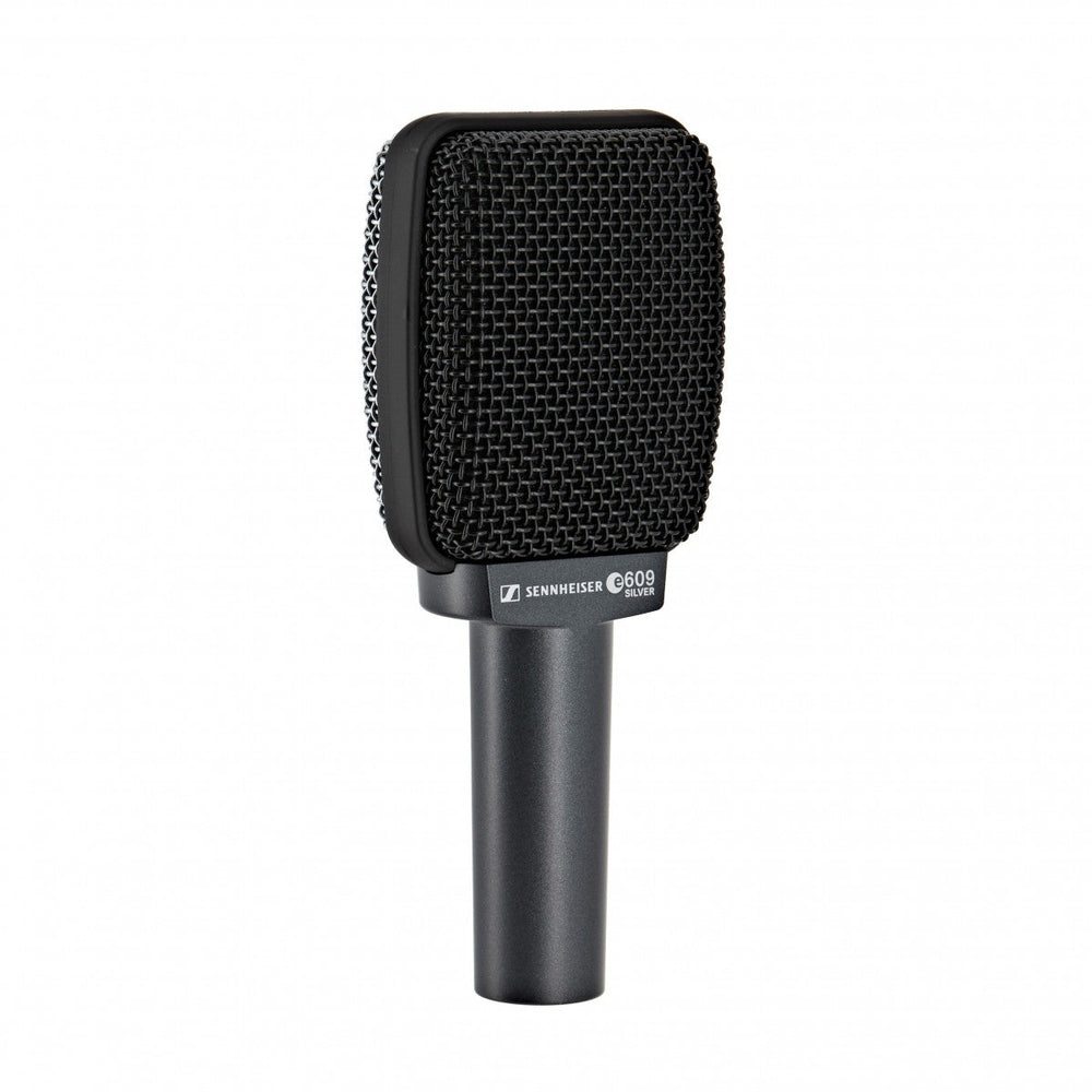 Introducing the Sennheiser E609 silver microphoneSennheiser's E609 dynamic microphone has a super-cardioid polar pattern and is suitable for recording wind instruments, percussion and electric guitar. This makes it perfect for live recording during concerts with very little background noise, and it's superb at preventing drum bleeding.Made in Germany, this microphone offers fantastic convenience, as it can be placed very close to the source and still produce a clean sound profile, which is particularly handy for gigging in smaller spaces, where quick setup times can be an issue.Rugged recording workhorseWith its sturdy metal body, the e609 Silver is built to withstand the rigors of touring and constant use, ensuring consistent performance night after night. The microphone's advanced shock-mount design reduces handling noise and vibration, allowing for cleaner recordings and performances. With a sharp silver finish, it looks sleek and professional too.A great gigging companionAdditionally, it has a practical shape and is lightweight so easily portable. When positioned face on and close to a guitar amp, the E609 is great for gigs as it does not require a stand, meaning less weight to carry with you!Rugged super-cardioid microphone, Suitable for electric guitar, percussion, wind instruments and drums, Impressive 40 to 15,000 Hz frequency range, 350 Ohm impedance, 1.5 mV / Pa 1 kHz sensitivity, Supplied with MZG 100 clip and bag