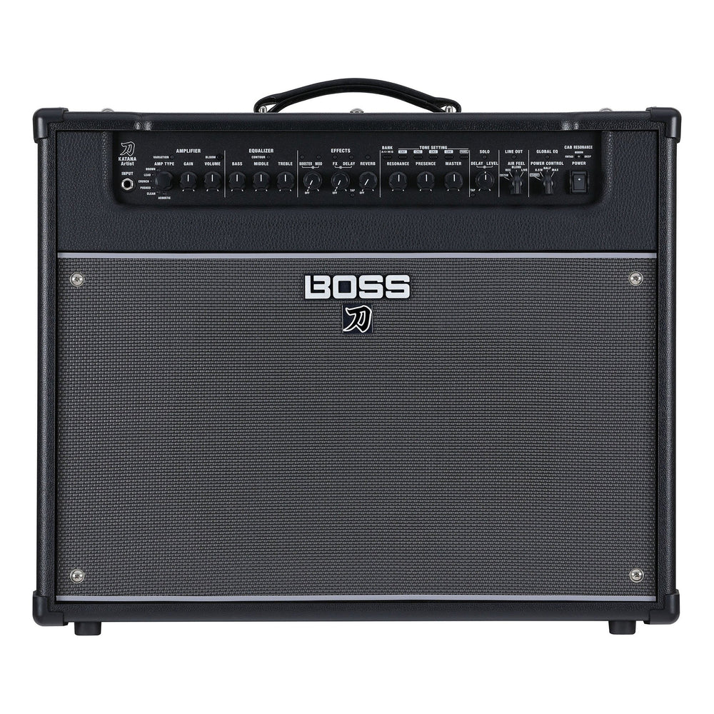 Introducing the Boss Katana Artist Gen 3 100W combo guitar amplifierWith Katana Gen 3, the acclaimed BOSS stage amplifier series evolves to take your guitar ambitions to the next level. The flagship Katana Artist Gen 3 brings you the ultimate Katana experience, offering 100 watts of Class AB power, a custom 12-inch Waza speaker, and a host of advanced tone tools. New Tube Logic enhancements enrich the core platform with even greater sound, feel, and response, including an expressive Pushed amp character and a unique Bloom option that re-voices the amp’s feel and response. BOSS Tone Studio has also been updated, making your editing workflow more intuitive than ever.Backed by Boss' advanced Tube Logic amplifier architecture and reactive Class AB power, the BOSS Katana series has become a standard for guitarists everywhere since its introduction in 2016. Katana amps embody decades of BOSS development knowledge, providing professional, tube-inspired sound coupled with modern advantages like onboard effects, one-touch memory recall, deep sound customisation, and reduced weight. Katana Gen 3 elevates the line-up with even more range and versatility, bringing you a playing experience that goes where no other amps can.The top-of-the-line Katana Artist Gen 3 is built to meet the sophisticated needs of advanced guitarists. Numerous performance and tone-shaping tools have direct panel controls for fast access, along with customisation options via BOSS Tone Studio. Developed by BOSS, the custom 12-inch Waza speaker provides the true character and response of the famous ’60s 25-watt British stack speaker with modern power handling capacity. The carefully tuned combo cabinet maximises the amp’s full potential, delivering smooth, punchy, and satisfying sound with a wide baffle and semi-closed design.Premium details for serious playersThe top-of-the-line Katana Artist Gen 3 is built to meet the sophisticated needs of advanced guitarists. Numerous performance and tone-shaping tools have direct panel controls for fast access, along with deep customisation options via BOSS Tone Studio. Developed by BOSS, the custom 12-inch Waza speaker provides the true character and response of the famous ’60s 25-watt British stack speaker with modern power handling capacity. The carefully tuned combo cabinet maximises the amp’s full potential, delivering smooth, punchy, and satisfying sound with a wide baffle and semi-closed design.Refined tube logic tonesTube Logic recreates tube circuitry and all its complex interactions at a component level. Our approach continues to evolve with refinements to the five amp characters available in previous Katana models, including the iconic high-gain Brown type. The new Pushed character spotlights internal dynamic enhancements with the touch-responsive gain of a driven clean combo. All six amp characters also include a variation for 12 distinctive tones. Going further, the Bloom switch engages a dedicated circuit that introduces a totally different amp feel. The sound comes alive with a sharper attack and a richly dynamic low-end response, two characteristics that are difficult to achieve at once.“Sweet Spot†sound at any volumeAs every tube amp lover knows, the sound becomes richer, fuller, and more responsive as you turn up the volume. Unfortunately, it also gets way too loud for many playing situations. An external power attenuator is a common solution, but it can introduce artefacts that colour the amp’s tone and feel. The integrated Power Control in Katana Gen 3 delivers the best of all worlds, letting you dial in cranked-amp inspiration with no adverse effect on the sound. Just turn the panel knob to transparently harness the level for everything from live stage playing to daily bedroom jams.Famous BOSS effectsKatana Artist Gen 3 features five simultaneous effect categories loaded with essential selections from the historic BOSS library. Booster, Mod, FX, Delay, and Reverb sections offer enhanced sound quality and access to 15 unique effects. There’s also a dedicated Solo section with a level boost and delay effect. BOSS Tone Studio unlocks additional possibilities, allowing you to customise the onboard effects from 60 different types and tweak deep options not available from the amp’s panel. And when the optional Bluetooth Audio MIDI Dual Adaptor is installed, you can wirelessly edit sounds on the gig using the BTS editor app on your smartphone.Unrivalled sound shapingBOSS Tone Studio for Katana Gen 3 offers new visual enhancements and graphic customisation options that make crafting your tone faster and more intuitive. Explore amp and effect editing tools, change the effect order, and shape the overall sound with the three-way Contour control and multiple EQs. Dial in system-wide settings and behaviours. And organise custom setups for all your gigs. You also have access to BOSS Tone Exchange, where you can download pro setups and share sounds with the worldwide Katana community.Complete stage commandKatana Artist Gen 3 features a host of powerful tools for modern performers. Eight Tone Setting memories let you store and recall complete amp/effect setups, while rear-panel jacks support remote control with footswitches, an expression pedal, and MIDI. The GA-FC and GA-FC EX Foot Controllers extend your capabilities even further, providing complete stage control solutions for your Katana Gen 3. Switch Tone Settings, turn effects on/off, integrate multiple expression pedals, and more. The GA-FC EX model also includes an expansion option to double your footswitches or control two Katana amps at once.Expand your rangeKatana Artist Gen 3 flows with all your creative journeys. Expand your stage presence by connecting one or two external speaker cabs (8-ohm maximum load). Easily link two amps via the Stereo Expand function, with master control from the main amp and stereo effects like chorus, delay, and reverb distributed across both amps for a wide, immersive sound. 
