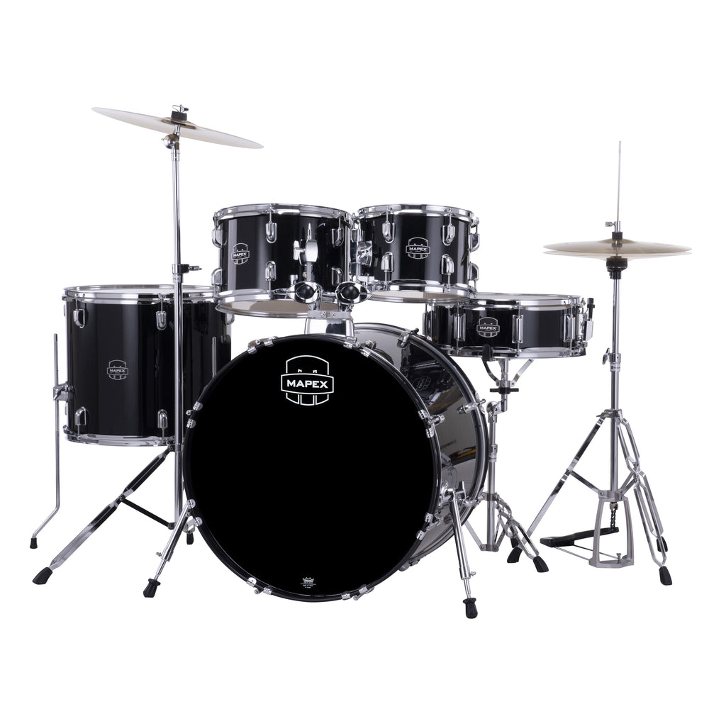 Introducing the Mapex Comet 22" rock fusion drum kitMeet the Mapex Comet Series: The new standard for beginners who aspire to greatness. Evolved from Mapex's best-selling Tornado series, Comet kits are crafted to transform your drumming journey from day one. They are for the aspiring drummer who’s ready to break through the and elevate your drumming from the very first beat. This 22" rock fusion drum kit is the smallest in the Comet series, but still packs plenty of punch and comes in a selection of sleek and vibrant colours.The heart of the Comet Series lies in its 9 Ply, 7.2mm Poplar Shells, coupled with Mapex SONIClear Bearing Edges. Allowing the drumhead to sit flatter, SONIClear Bearing Edge gives better contact with the shell. The result of this combination is a stronger and deeper fundamental pitch, effortless and consistent tuning, and a significantly expanded tuning range.The Mapex Comet kit is also available in bebop and fusion sizes.Sophisticated features for durabilityUpgraded from Tornado, 14†Hi-Hat and 16†Crash cymbals offer a bright and clear tone with improved durability and response. Mapex Comfort Curve wingnuts and wingbolts across the full hardware set are very reliable, and the convenience of the Comet kit is increased by the TH6215 single tom holder offers 360-degree adjustment, making tom set up quick and secure.Hardware included for superior convenienceThe included 250 Series hardware pack offers an all-in-one solution for drummers needing to complete their setup without breaking the bank. Ideal for pairing with pre-loved or entry-level shell packs, this bundle is about getting you up and playing quickly and affordably. The footboard is lifted straight from Mapex's popular 400 Series, embedding it into the 250 Series Hi Hat Stand and Bass Drum Pedal. You get the feel of quality hardware with the durability and reliability Mapex is known for.Feel great at your kitA sleek and unified look is ensured by the refined wingnut/bolt design on the Cymbal and Snare stands, aligning the 250 Series visually and functionally with the broader Mapex hardware family. This means not only does your setup perform great, it looks the part too. The T400 drum throne makes no compromises on comfort for cost. Overall, the 250 Series hardware is precision-engineered for the drummer who's all about breaking the mould without breaking the bank - the perfect companion to the Comet Series kits.What's in the kit?Bass drum - 22"x16â€2 x tom-toms - 10"x7" & 12"x8"Floor tom - 16"x14â€Snare drum - 14"x5"14" Hi hats16" crash cymbalCymbal boom standHi hat standSingle bass drum pedalSnare drum standCymbal standDrum throneDurable and responsive beginner 5-piece drum kit, 4-piece 250 Series hardware set, 400 Series drum throne, 14" hi-hats & 16" crash, 9-ply, 7.2mm poplar shells for deep, warm tone, Mapex SONIClear bearing edges for consistent tuning, TH6215 single tom holder for 360-degree adjustment, Mapex Comfort Curve wingnuts and wingbolts across the full hardware set