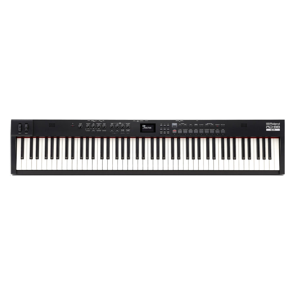 Introducing the Roland RD-88 Compact Stage PianoThe RD-88 EX delivers a premium RD stage piano experience with expanded sounds and supreme playability. Perform at the highest level with SuperNATURAL 3 and ZEN-Core engines and the expressive PHA-4 hammer-action keyboard. Freely combine internal sounds with computer-based virtual instruments, and perform anywhere with the portable design and room-filling stereo speaker system.RD pianos have been the choice of professional keyboardists for more than 30 years, appearing on stages around the world. Now you can have the acclaimed RD sound and playability in a lighter, more accessible, and more affordable instrument. The RD-88 EX features a lightweight and compact design so even in the smallest venues it fits in perfectly and transport between gigs is a breeze.However, for such a small package, it really packs a punch utilising its onboard, room filling speaker system. The RD-88 EX embodies all the qualities that have made RD pianos the stage standard since 1986. Infused with Roland’s industry-leading technologies and versatile controller features, this inspiring instrument is primed for every professional playing situation.World-class touch and feelThe RD-88 EX offers supreme playability honed with five decades of Roland piano development. The PHA-4 88-note keyboard features a weighted hammer action and Ivory Feel keys for an authentic grand feel, realised with an innovative design that reduces the instrument’s weight without compromising the feel or performance.SuperNATURAL Acoustic Piano 3 ExpansionThis newly developed instrument adds another premium concert piano option to the RD-88, complementing the SuperNATURAL acoustic and electric pianos already included. SuperNATURAL Acoustic Piano 3 offers 15 distinctive Tones and 20 Scenes, from bright, dynamic sounds for live band performances to darker textures for solo work and ambient explorations. Classic EPs are on hand, with stunningly accurate recreations of vintage icons from the ’60s, ’70s, and ’80s, and the RD-88 EX also includes over 3000 non-piano sounds letting you tackle all types of gigs with just one keyboard. Tap into organs, synths, strings, brass, world sounds, and more from the historic Roland library, fuelled by the same ZEN-Core engine found in Roland's flagship synthesizers.Easy to navigate controlsOne of the many great features of the RD-88 EX is it's intuitive controls and friendly layout. This allows you to give confident and expressive performances, without having to worry about finding the right control to use. Vital controls are clearly marked and always in reach, so you can quickly find your favourite sounds, add effects, or shape the tonal balance on the fly to suit the venue. You can quickly call up sound categories, save setups in Scenes, and jump to your main piano voice with a single touch. Multi-function controls provide hands-on access to volume levels and many other parameters, and a large effect selection is also available, ready to enhance sounds with everything from basic studio colour to intense over-the-top processing.Compact for easy transport and set-upThe RD-88 EX's compact design makes it easy to take with you on the road, or to practice with at home. Its lightweight and sturdy build makes it easy to take with you and quick to set up, even on small stags or in cramped rehearsal spaces. And the room-filling integrated speaker system is ultra-convenient and lets you play with less clutter and less fuss.Roland Corporation · 001 Concert PianoPortable and sophisticated stage piano with expanded sound library, SuperNATURAL 3 and ZEN-Core engines deliver high-end modelling sounds, 88 key PHA-4 keyboard action, Onboard stereo speaker system, USB audio/MIDI interface for seamless computer integration, Complete with DP-10 Damper Pedal